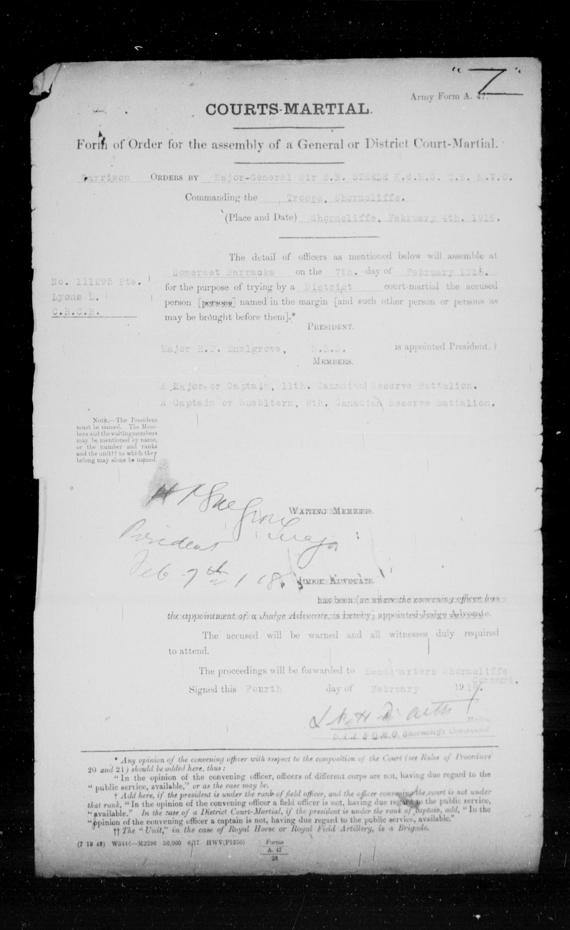 Ministry of the Overseas Military Forces of Canada : Courts martial records, 1914-1919 - 8674