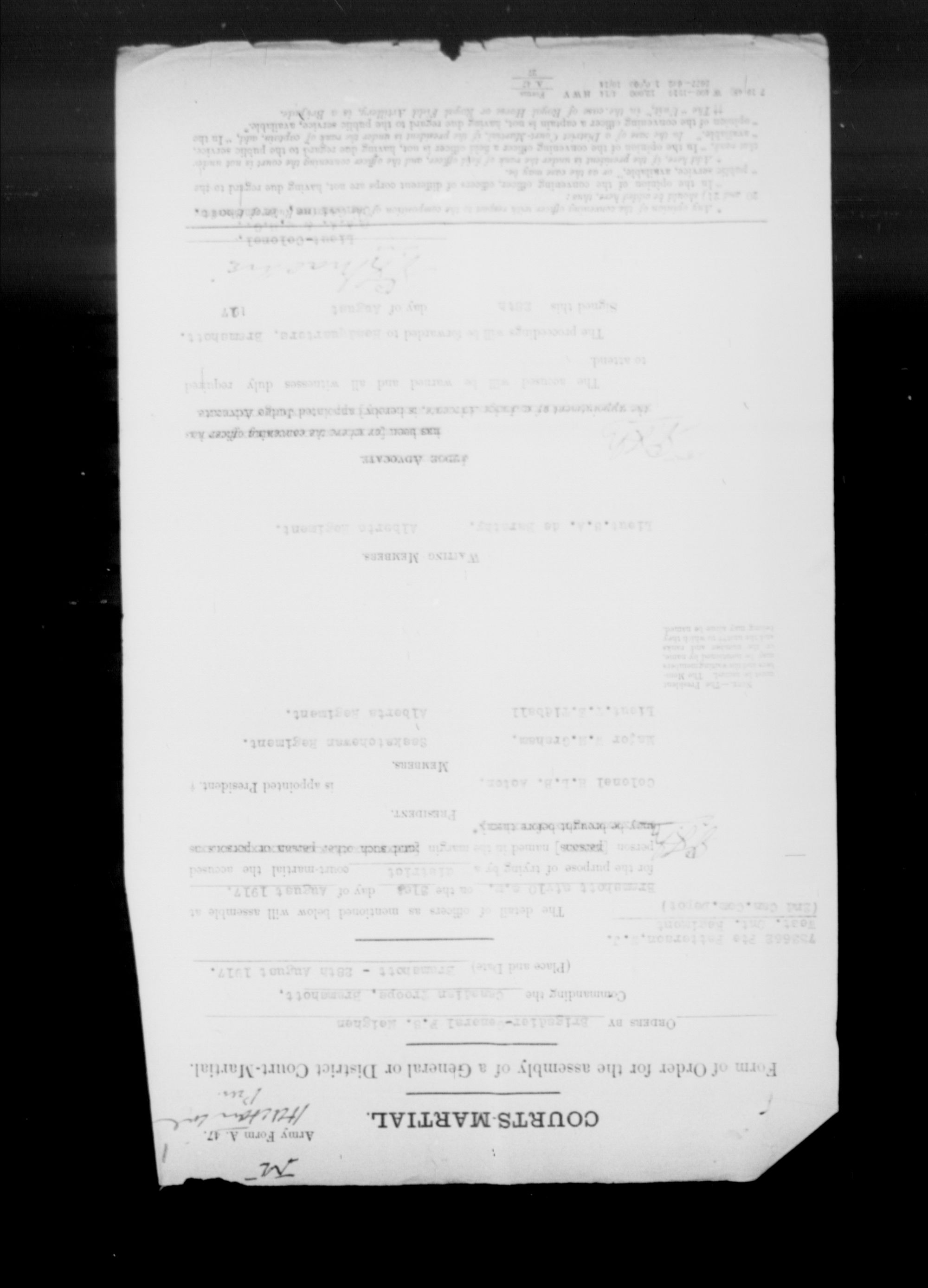 Ministry of the Overseas Military Forces of Canada : Courts martial records, 1914-1919 : T-8676