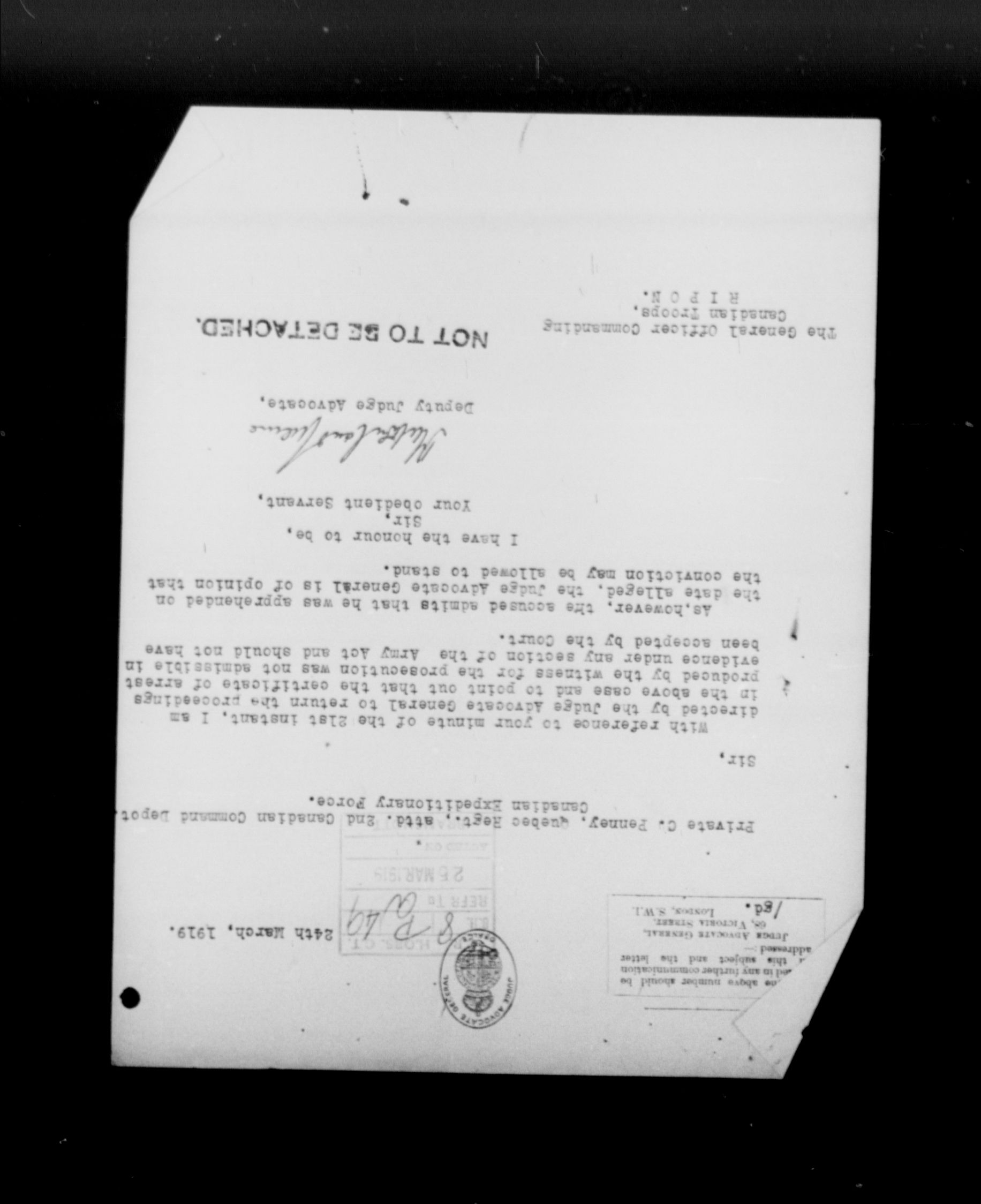 Ministry of the Overseas Military Forces of Canada : Courts martial records, 1914-1919 - 8676