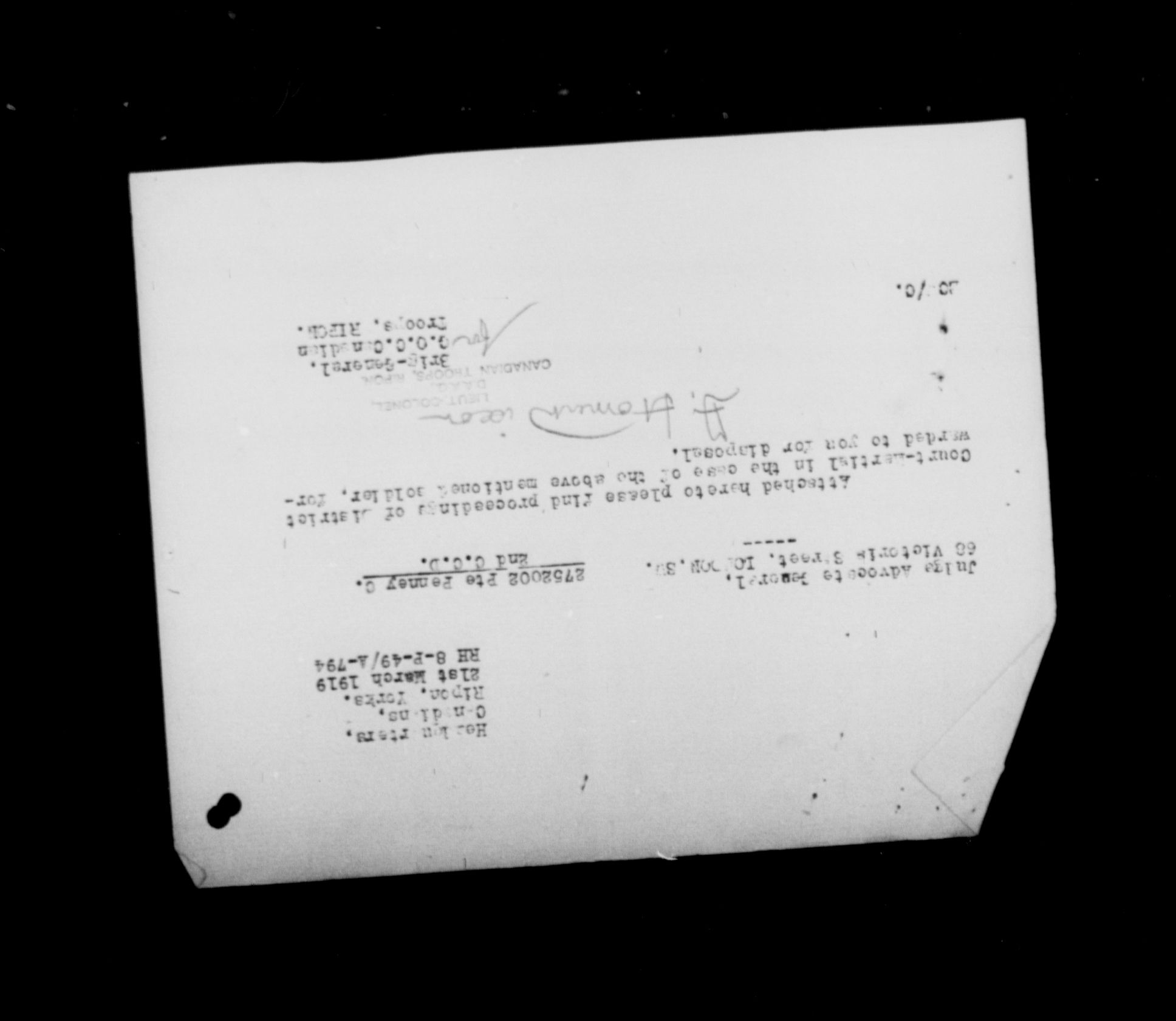 Ministry of the Overseas Military Forces of Canada : Courts martial records, 1914-1919 : T-8676