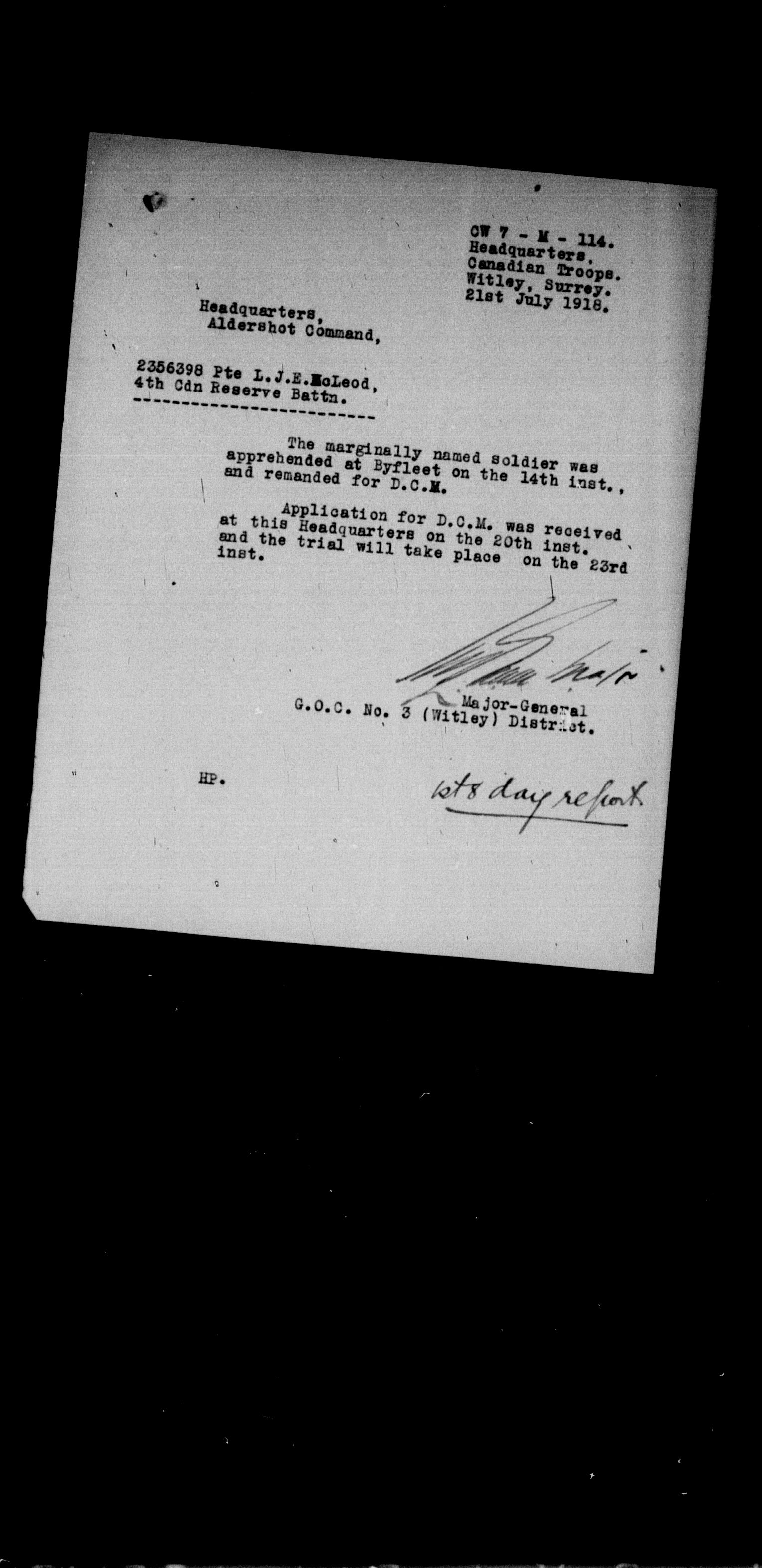 Ministry of the Overseas Military Forces of Canada : Courts martial records, 1914-1919 - 8679