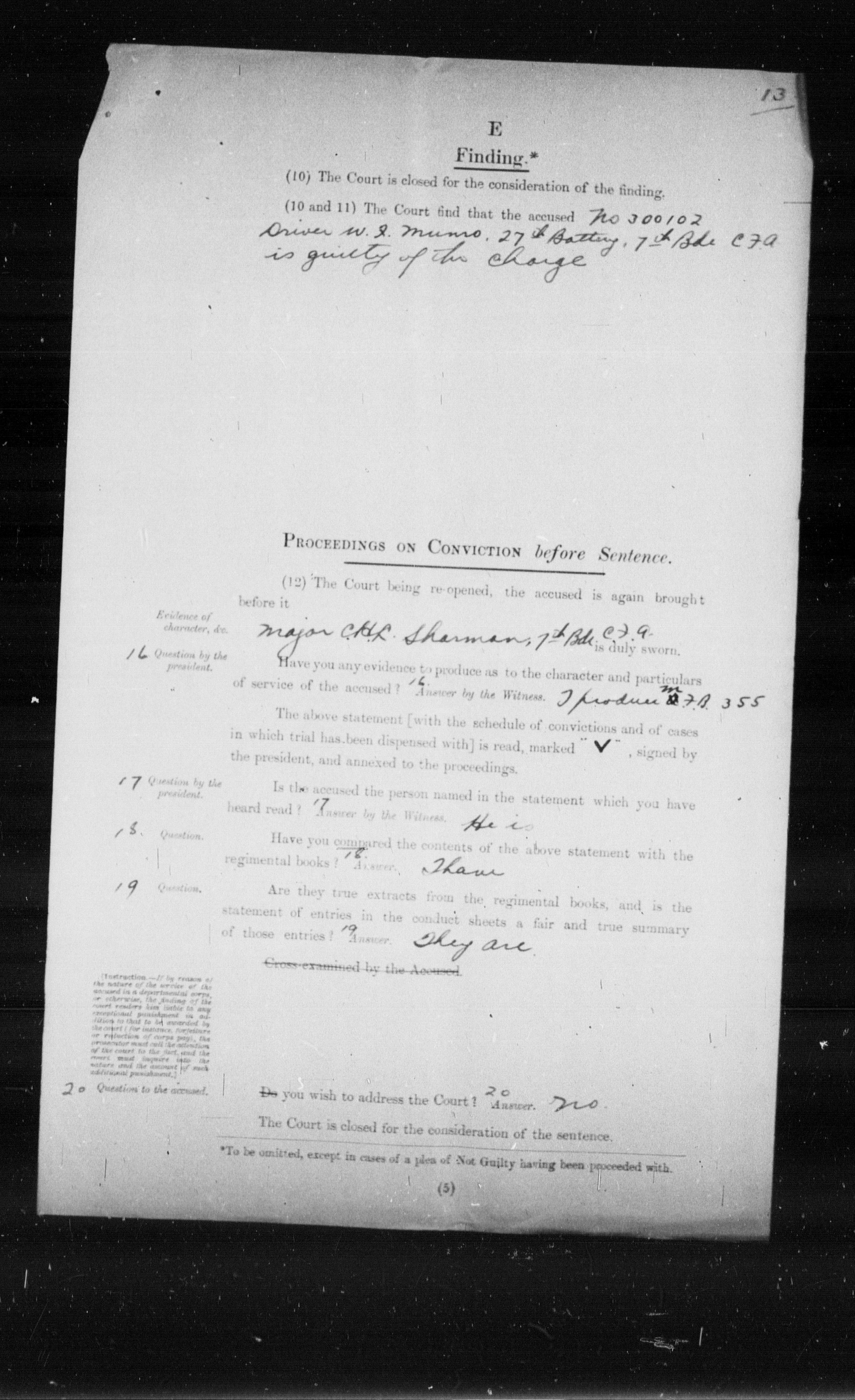 Ministry of the Overseas Military Forces of Canada : Courts martial records, 1914-1919 - 8681
