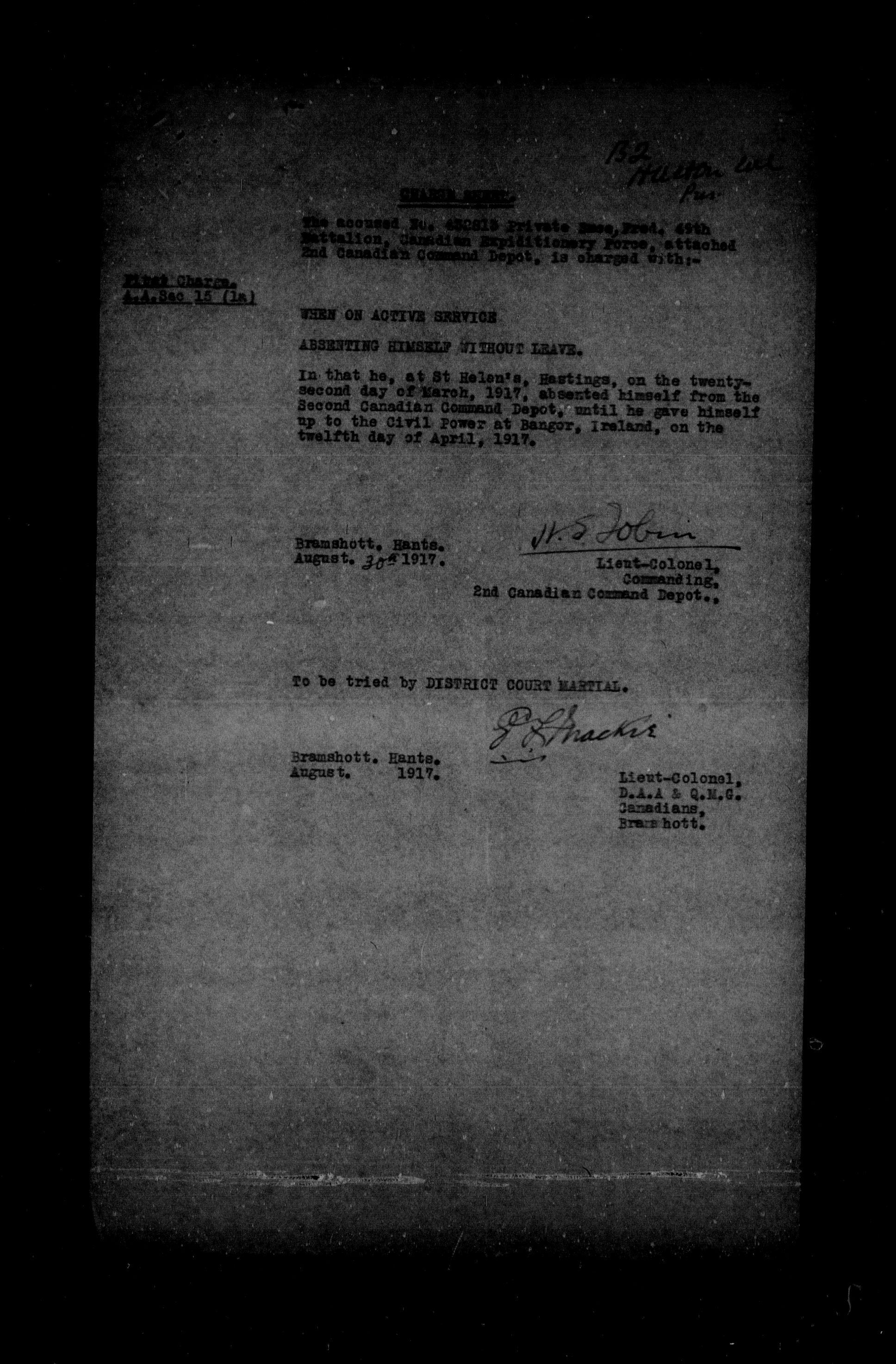 Ministry of the Overseas Military Forces of Canada : Courts martial records, 1914-1919 - 8682