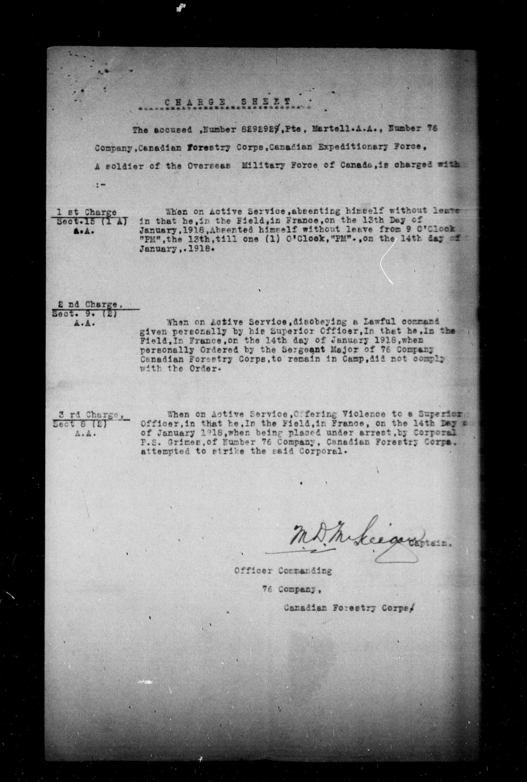 Ministry of the Overseas Military Forces of Canada : Court martial records, 1914-1919 - 8683