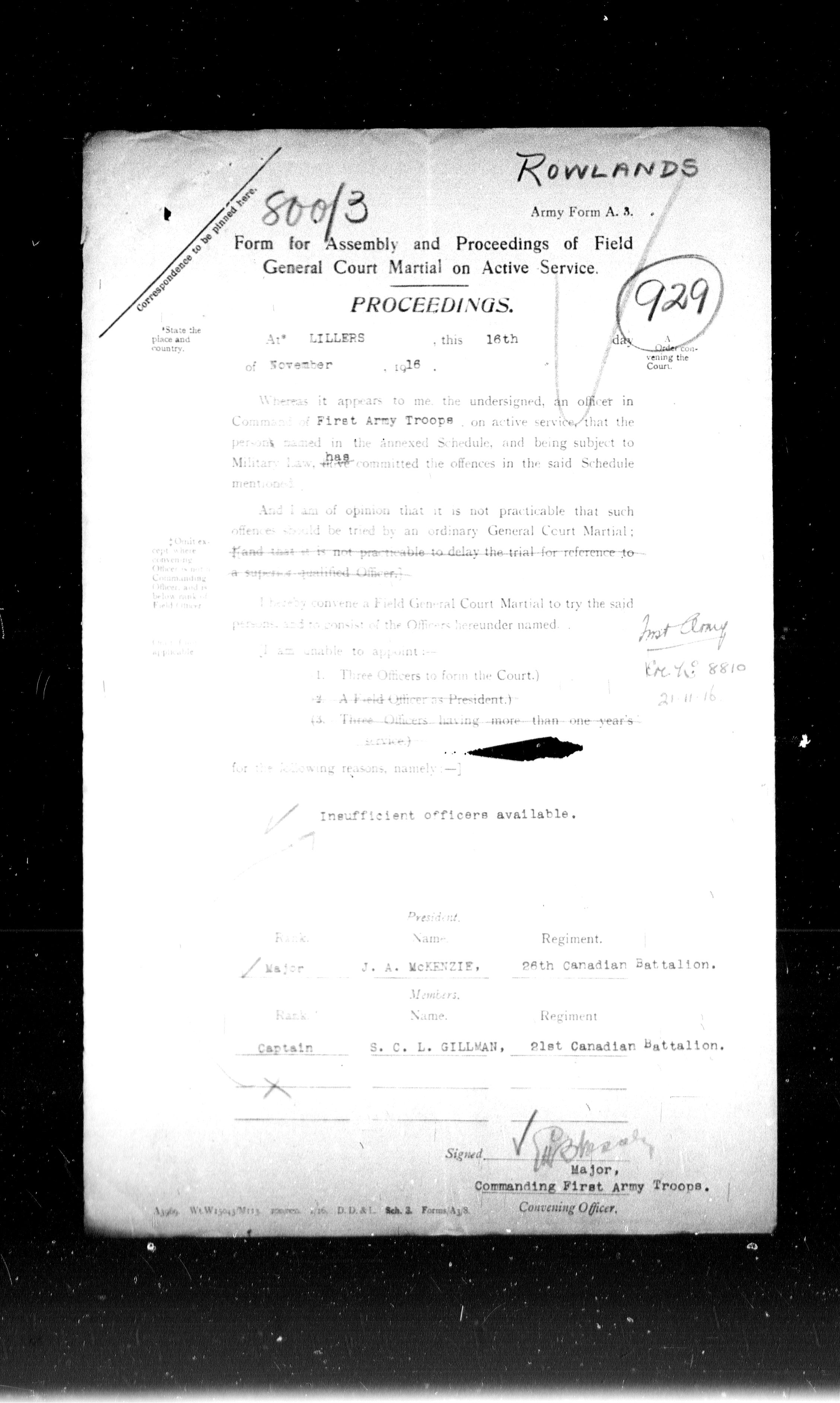Ministry of the Overseas Military Forces of Canada : Courts martial records, 1914-1919 - 8684
