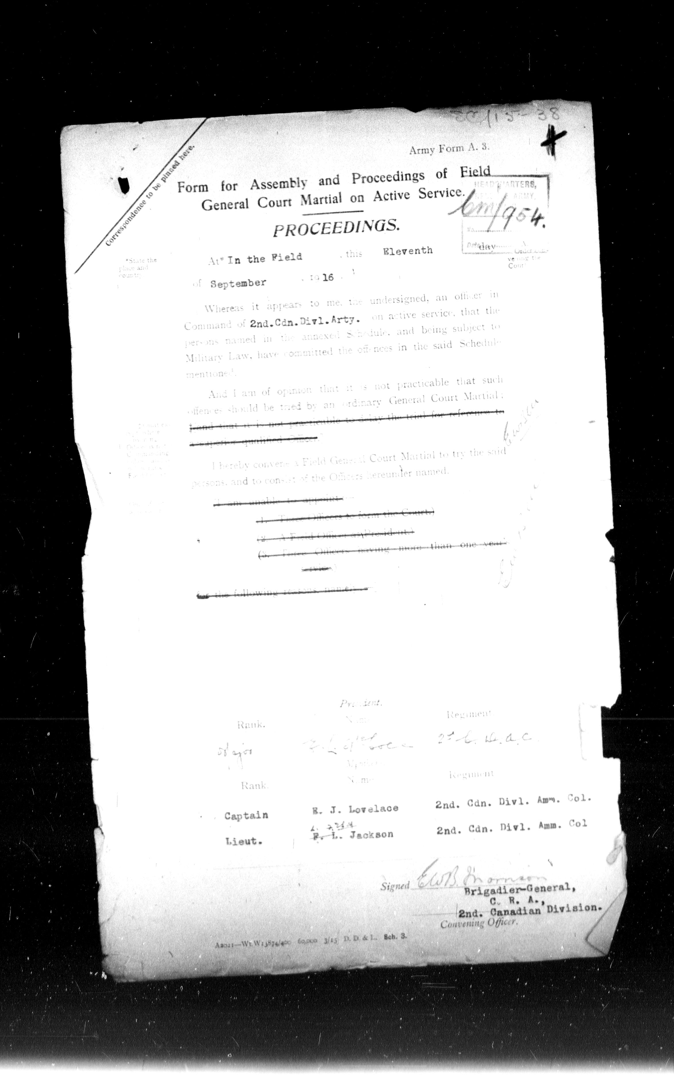 Ministry of the Overseas Military Forces of Canada : Courts martial records, 1914-1919 : T-8684