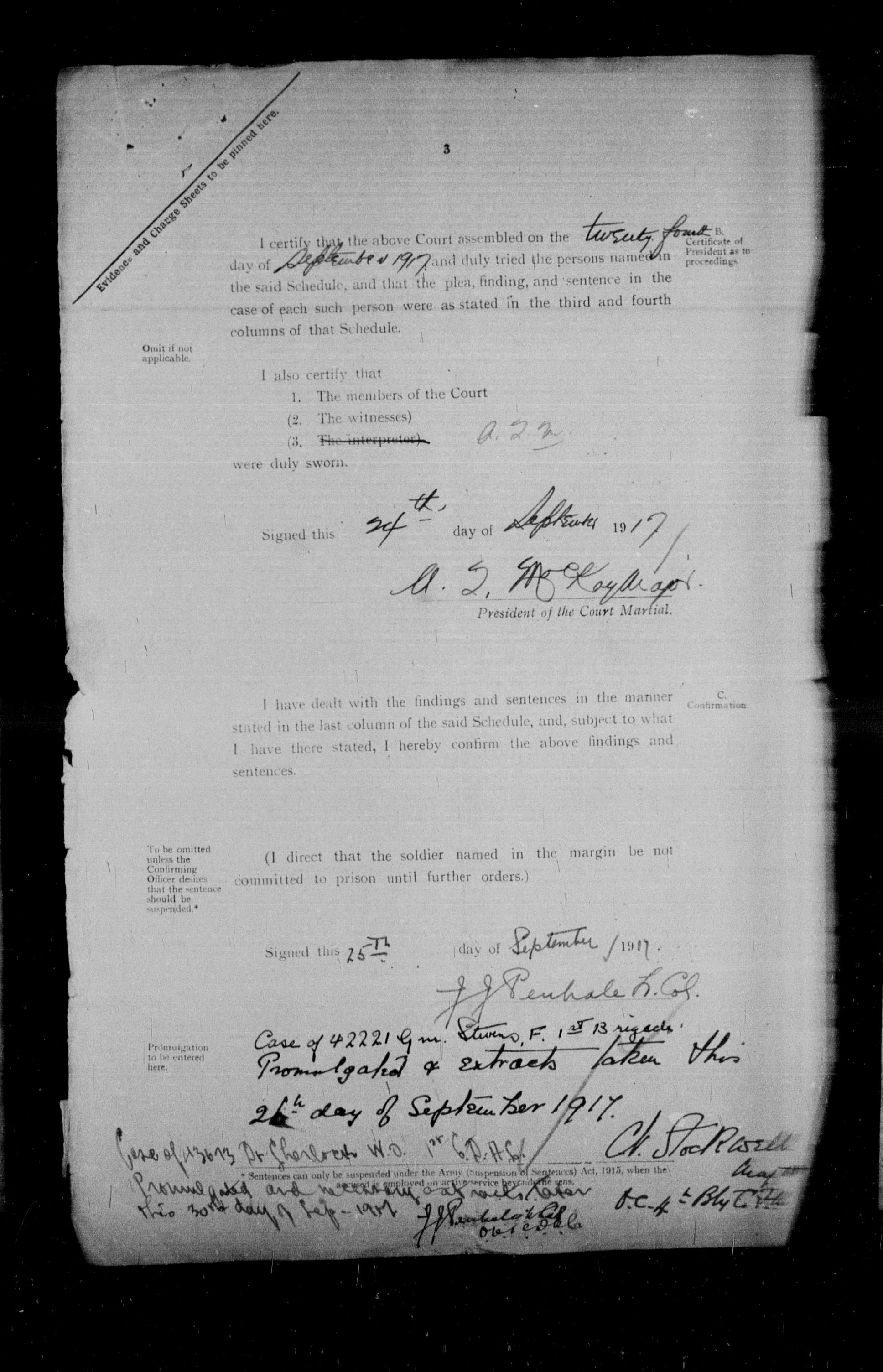 Ministry of the Overseas Military Forces of Canada : Courts martial records, 1914-1919 - 8685