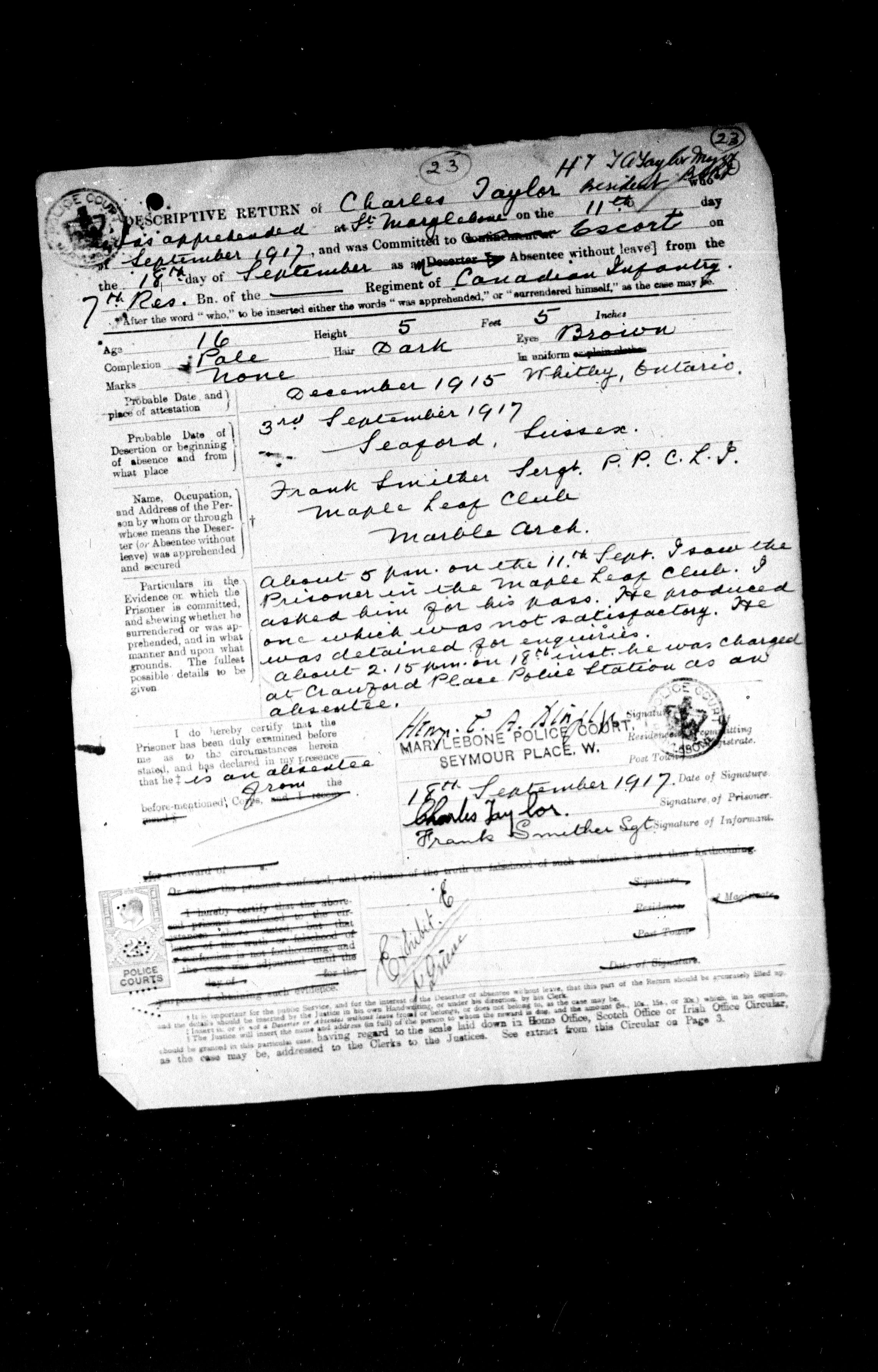 Ministry of the Overseas Military Forces of Canada : Courts martial records, 1914-1919 : T-8686