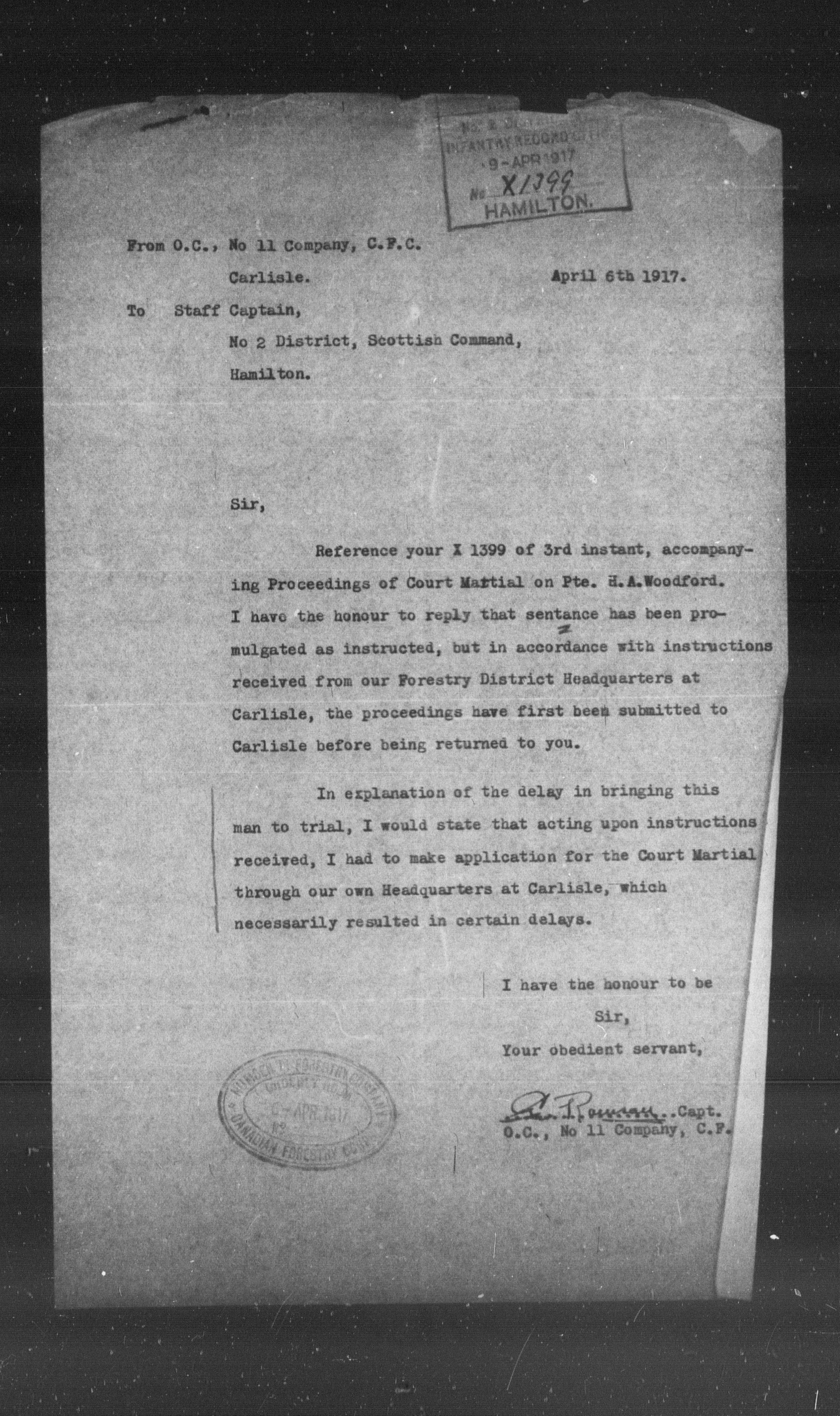 Ministry of the Overseas Military Forces of Canada : Courts martial records, 1914-1919 - 8687