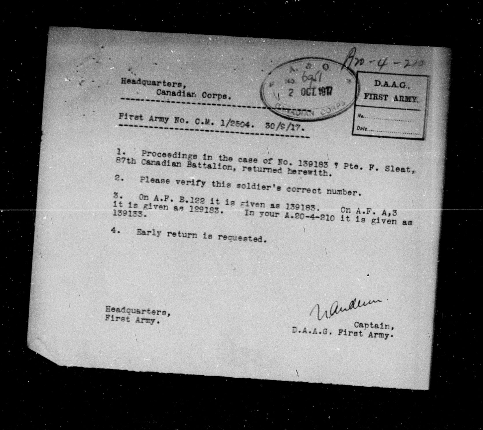 Ministry of the Overseas Military Forces of Canada : Courts martial records, 1914-1919 - 8688