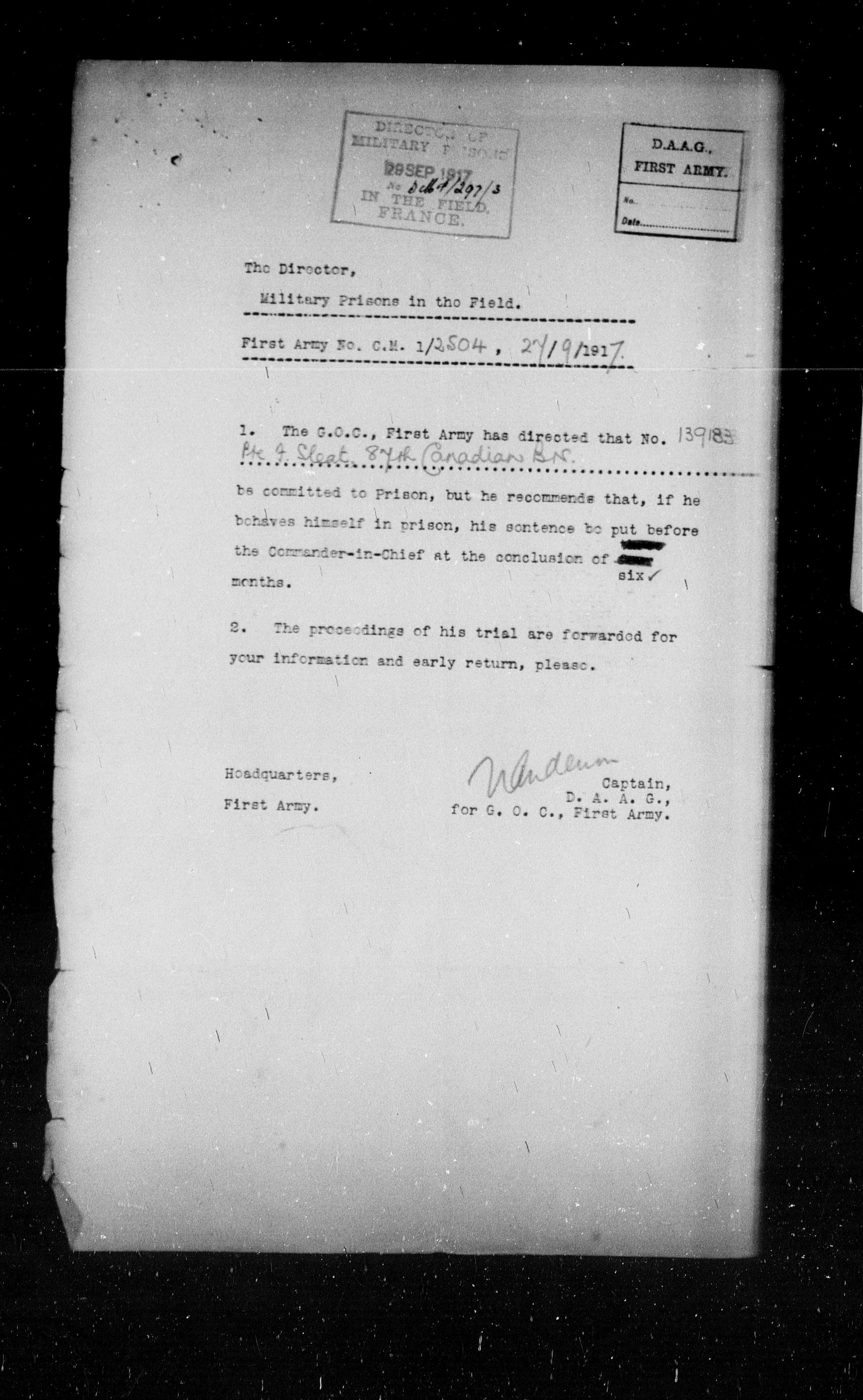 Ministry of the Overseas Military Forces of Canada : Courts martial records, 1914-1919 - 8688