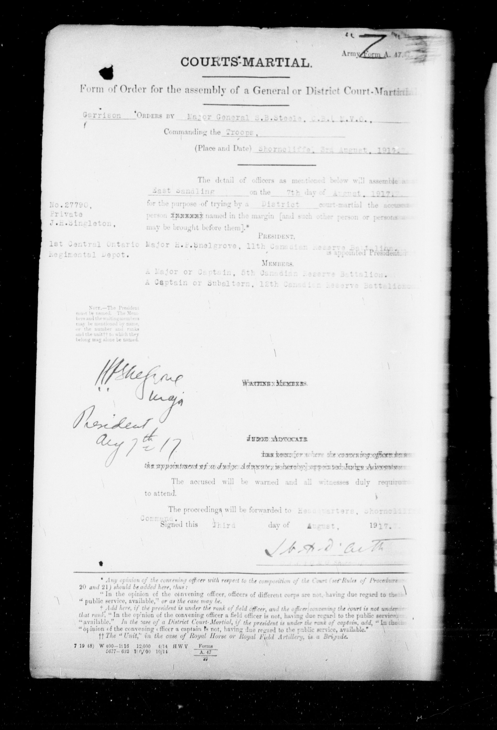 Ministry of the Overseas Military Forces of Canada : Courts martial records, 1914-1919 - 8688