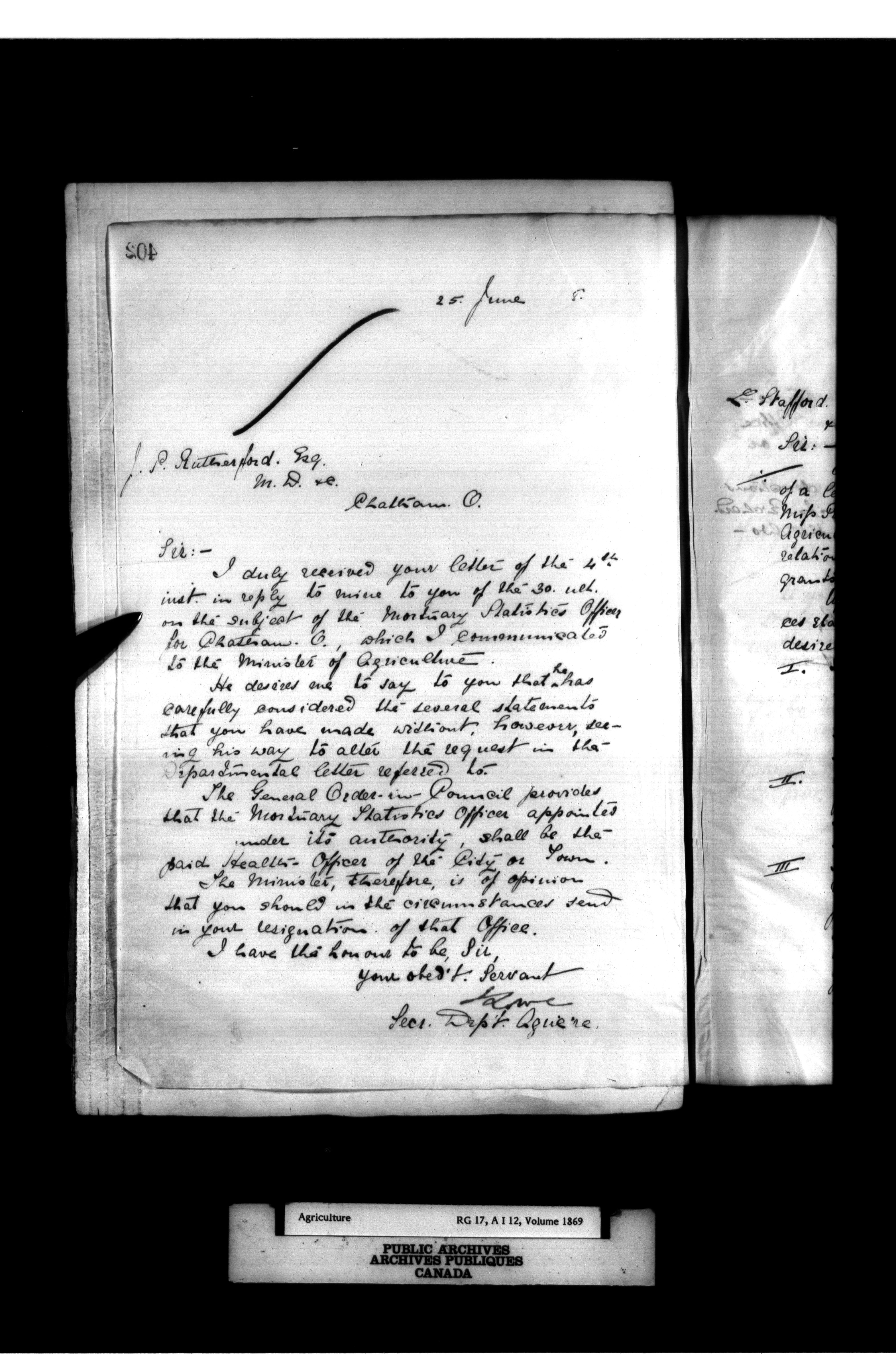 Department of Agriculture : Secretary and Assistant Deputy Minister's letterbooks, 1881-1916 - 869