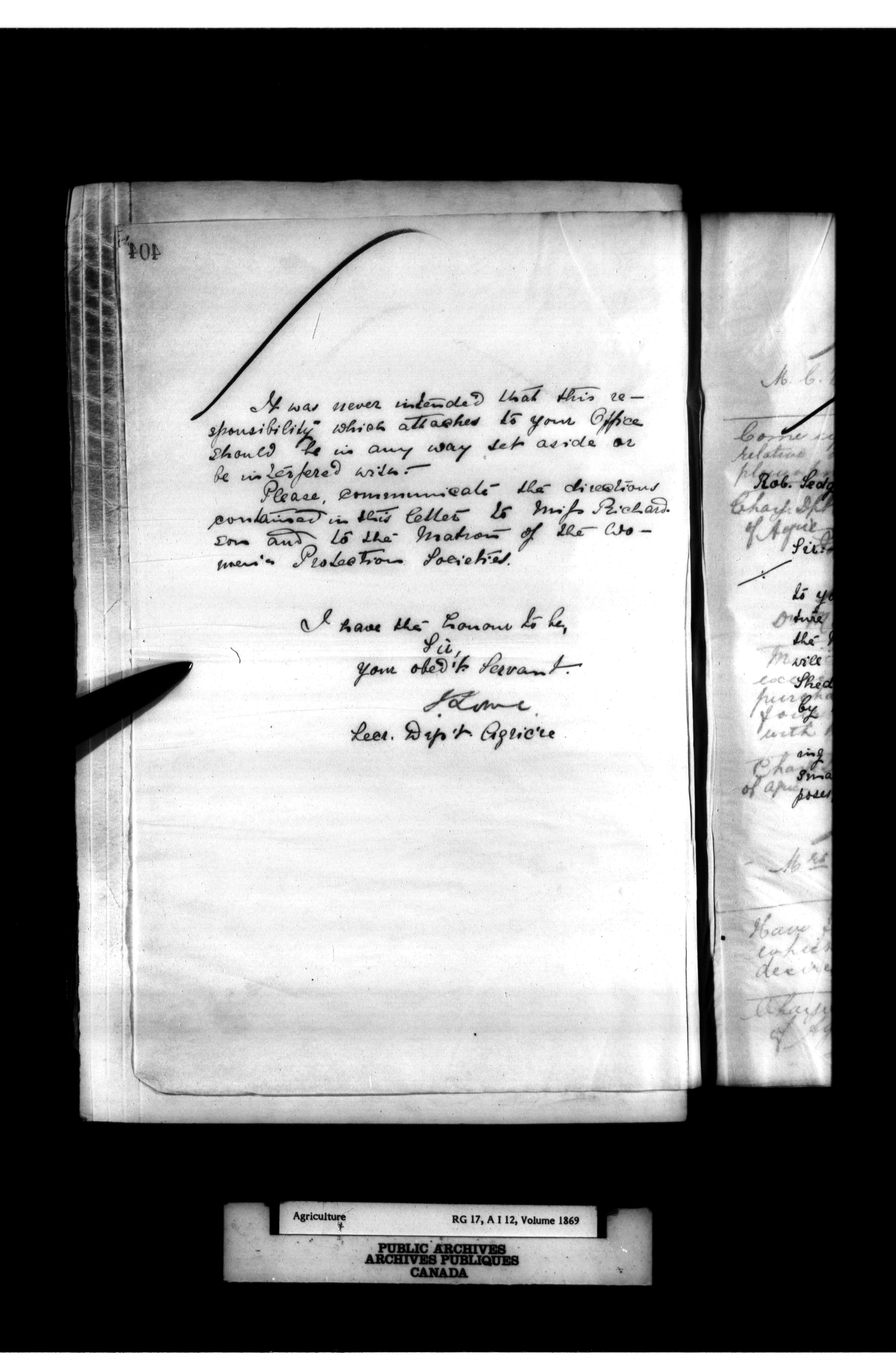 Department of Agriculture : Secretary and Assistant Deputy Minister's letterbooks, 1881-1916 - 869