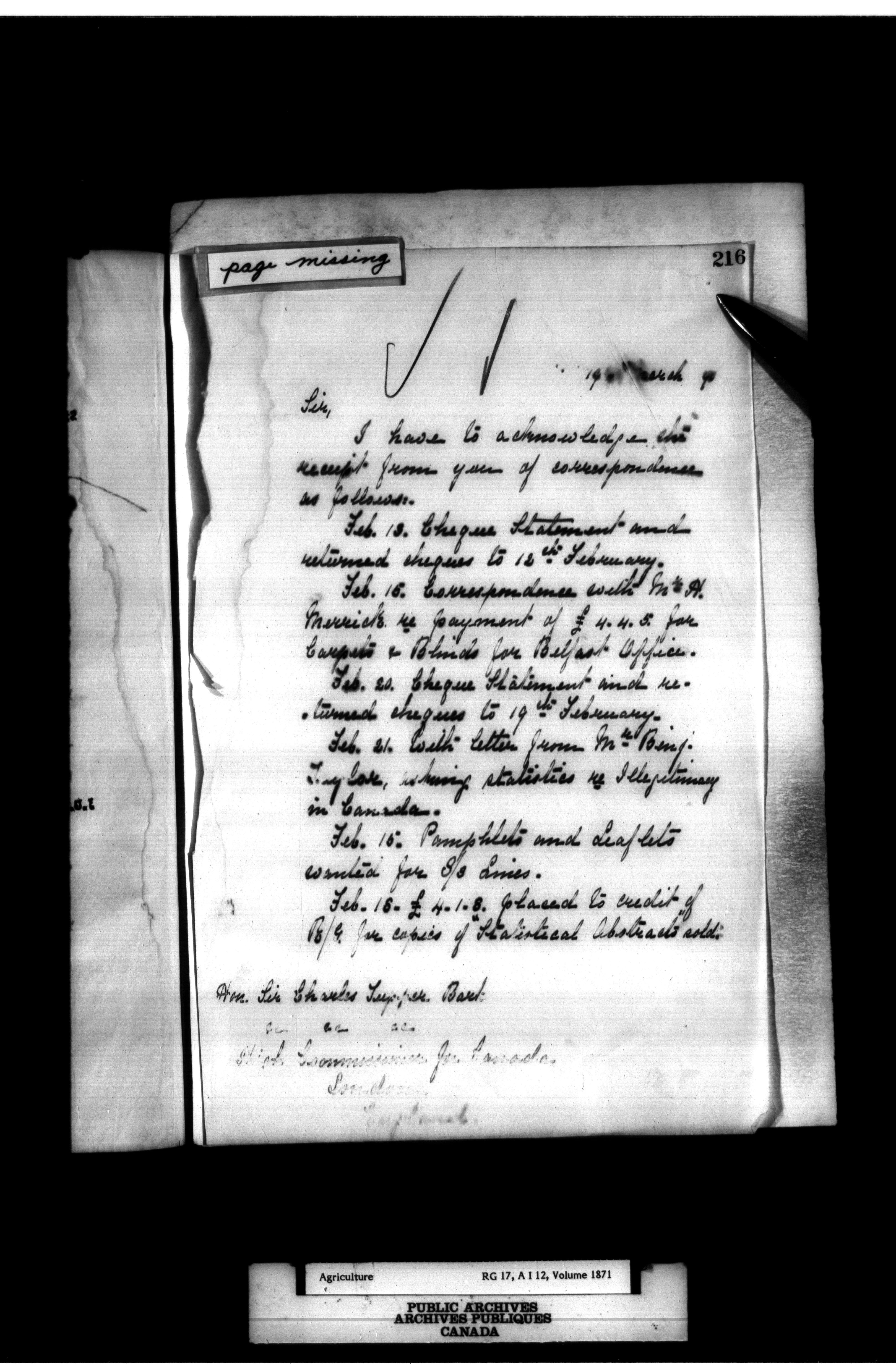 Department of Agriculture : Secretary and Assistant Deputy Minister's letterbooks, 1881-1916 - 869