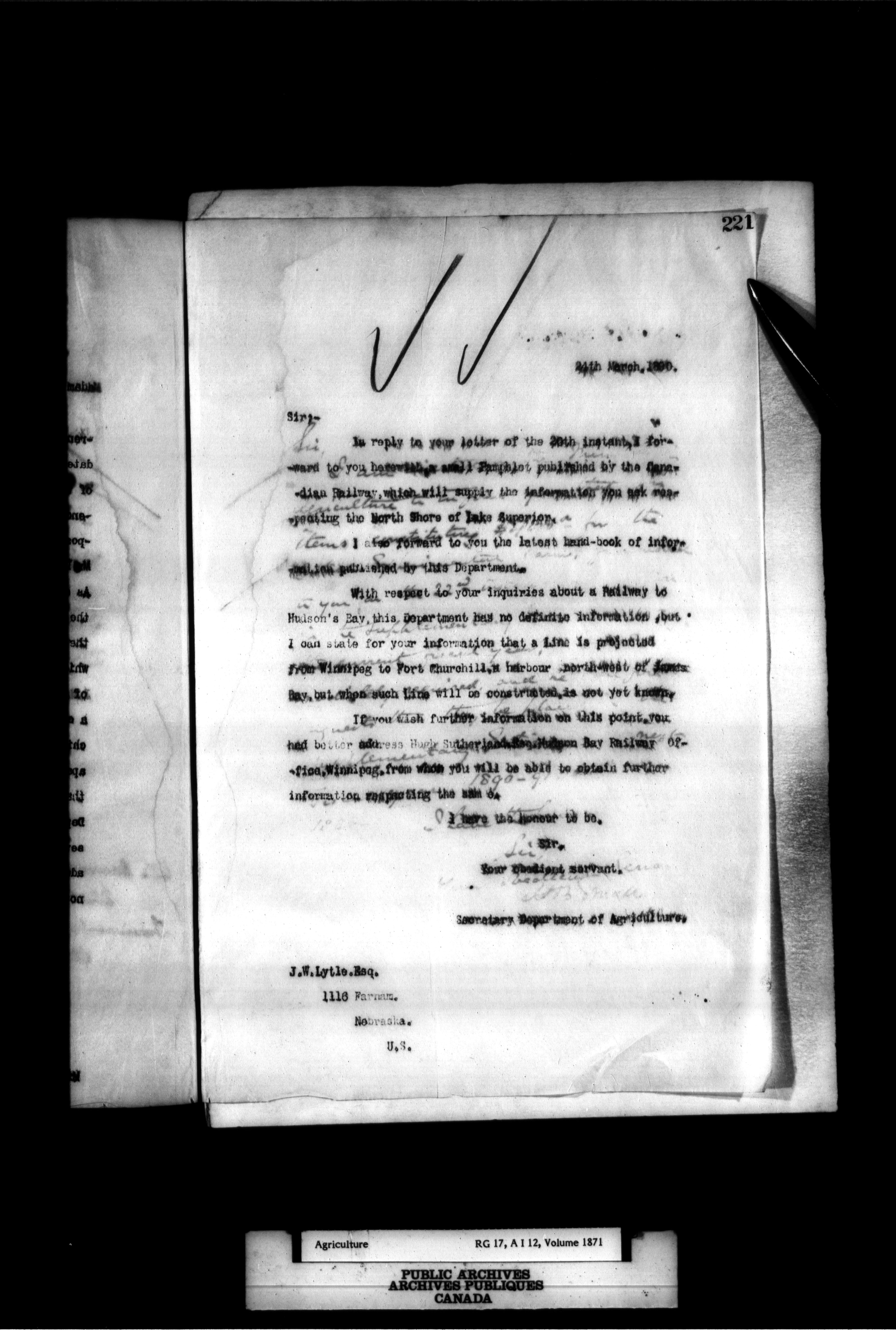 Department of Agriculture : Secretary and Assistant Deputy Minister's letterbooks, 1881-1916 - 869