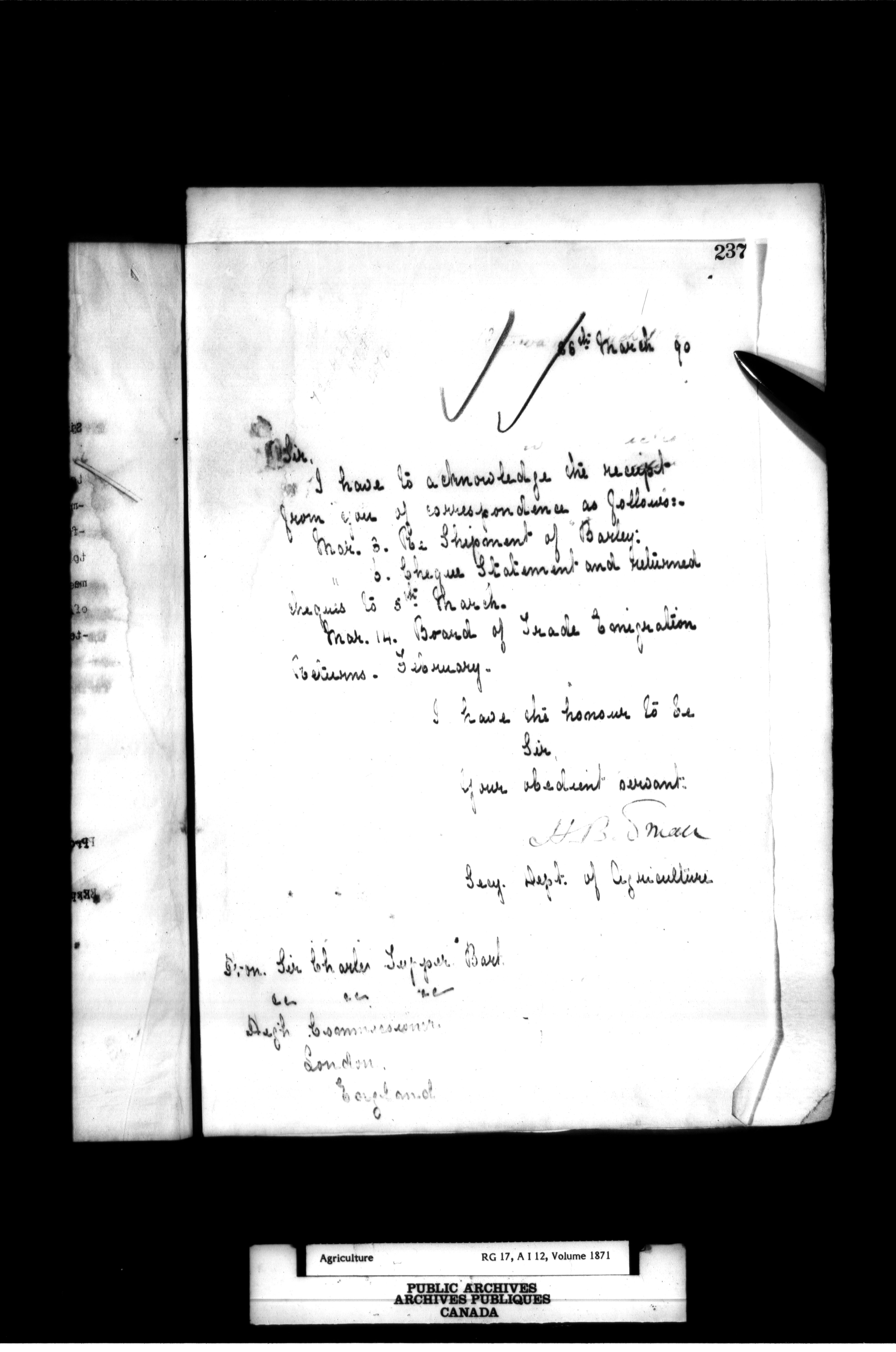 Department of Agriculture : Secretary and Assistant Deputy Minister's letterbooks, 1881-1916 - 869