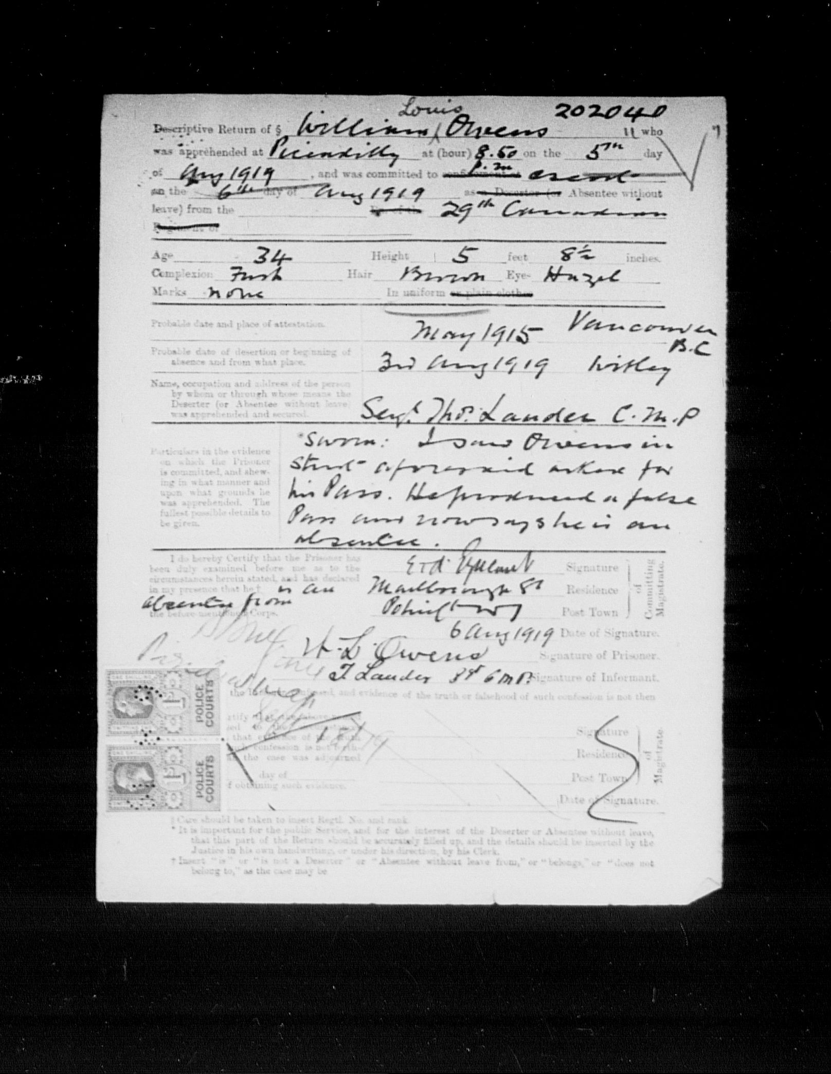 Ministry of the Overseas Military Forces of Canada : Courts martial records, 1914-1919 - 8691