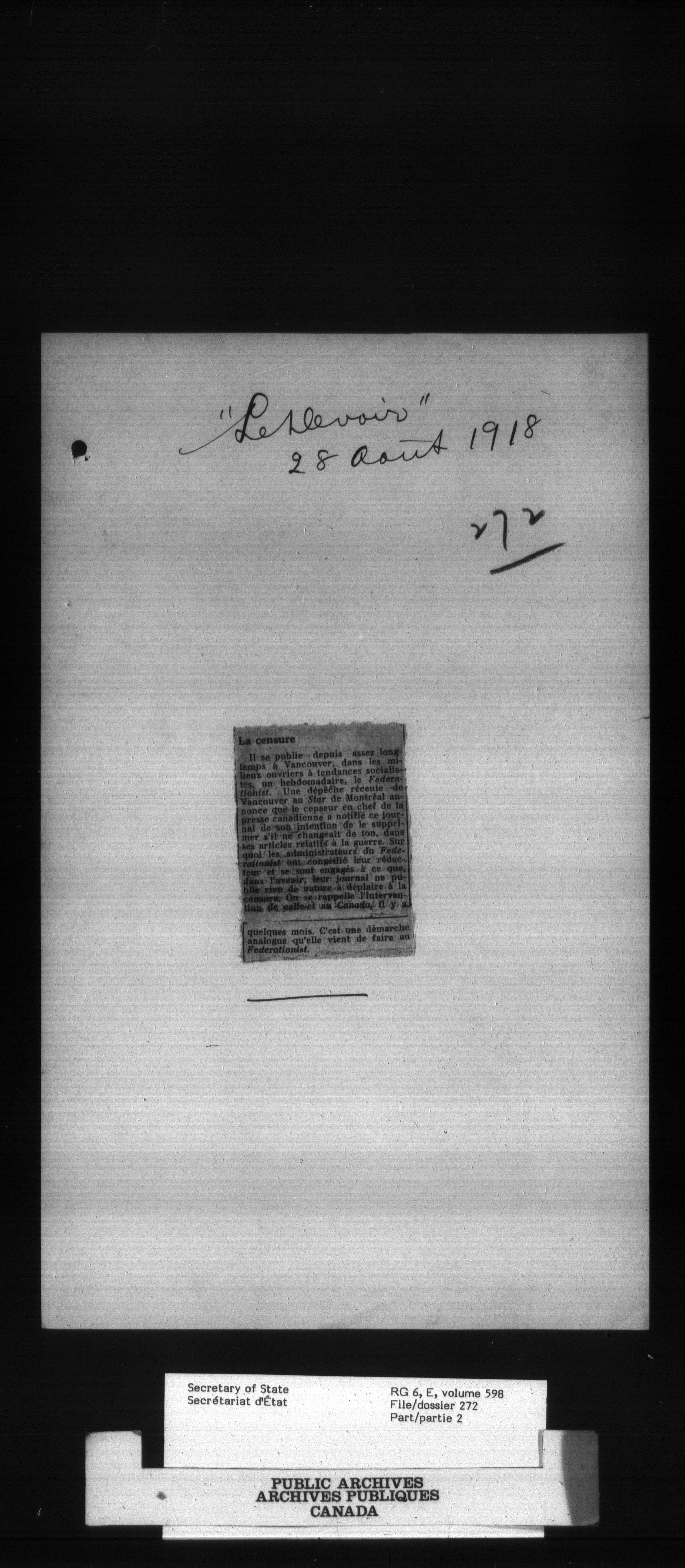 Secretary of State : Chief Press Censor, 1915-1920 - 87