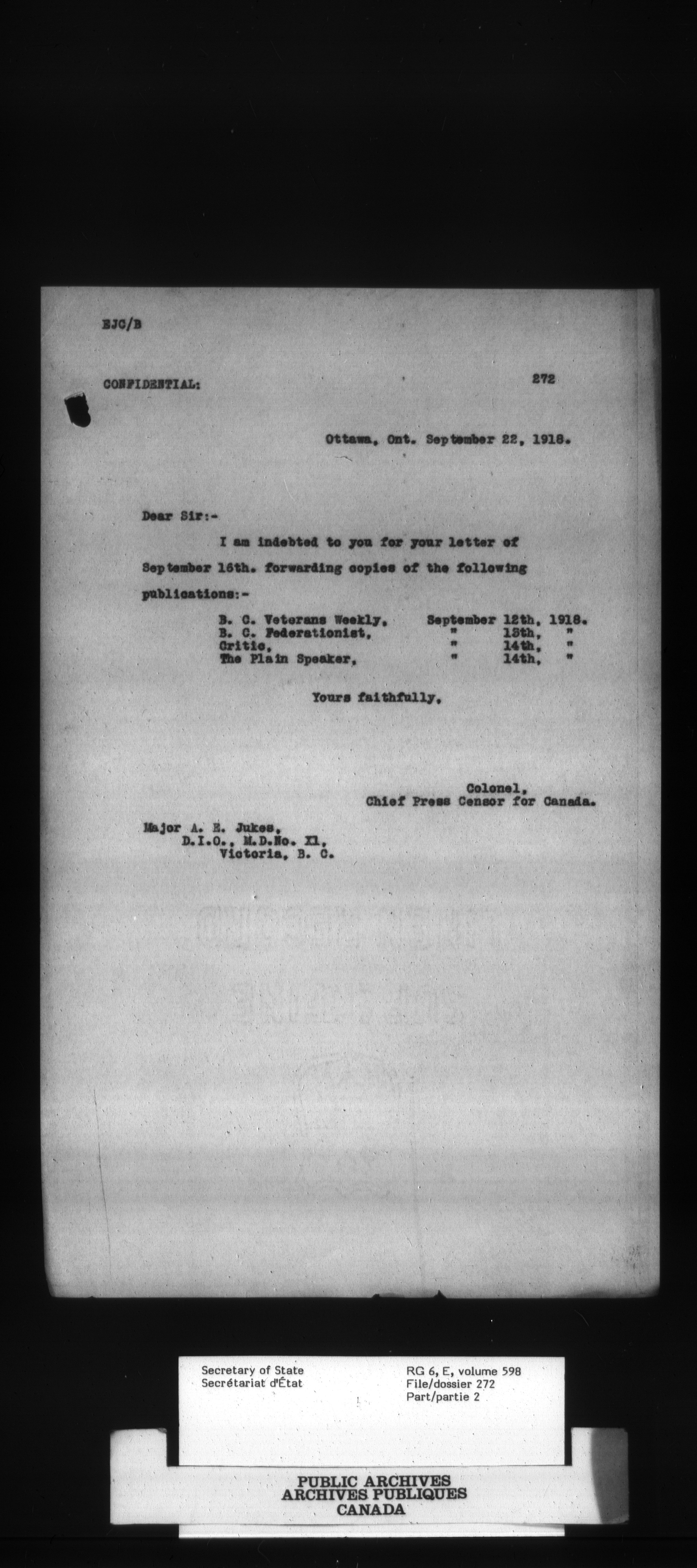 Secretary of State : Chief Press Censor, 1915-1920 - 87