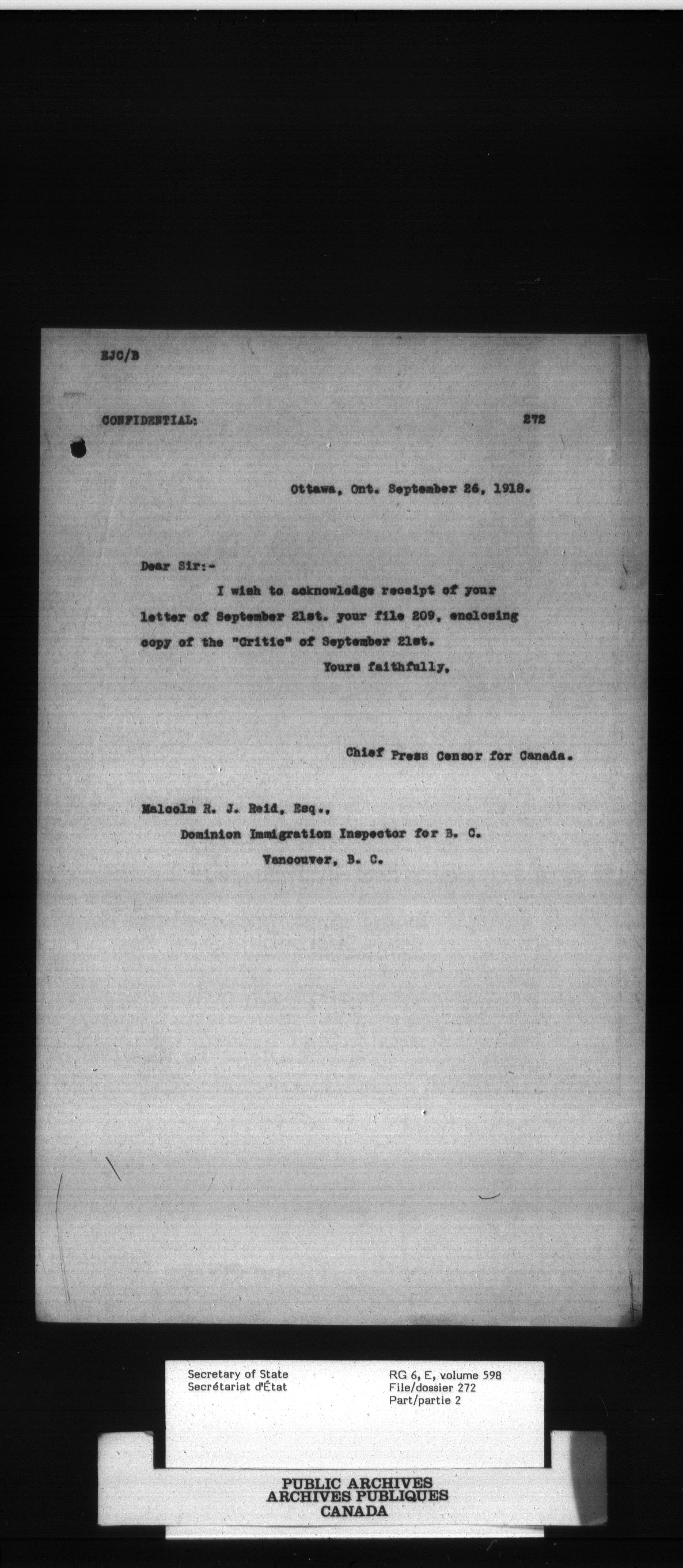 Secretary of State : Chief Press Censor, 1915-1920 - 87