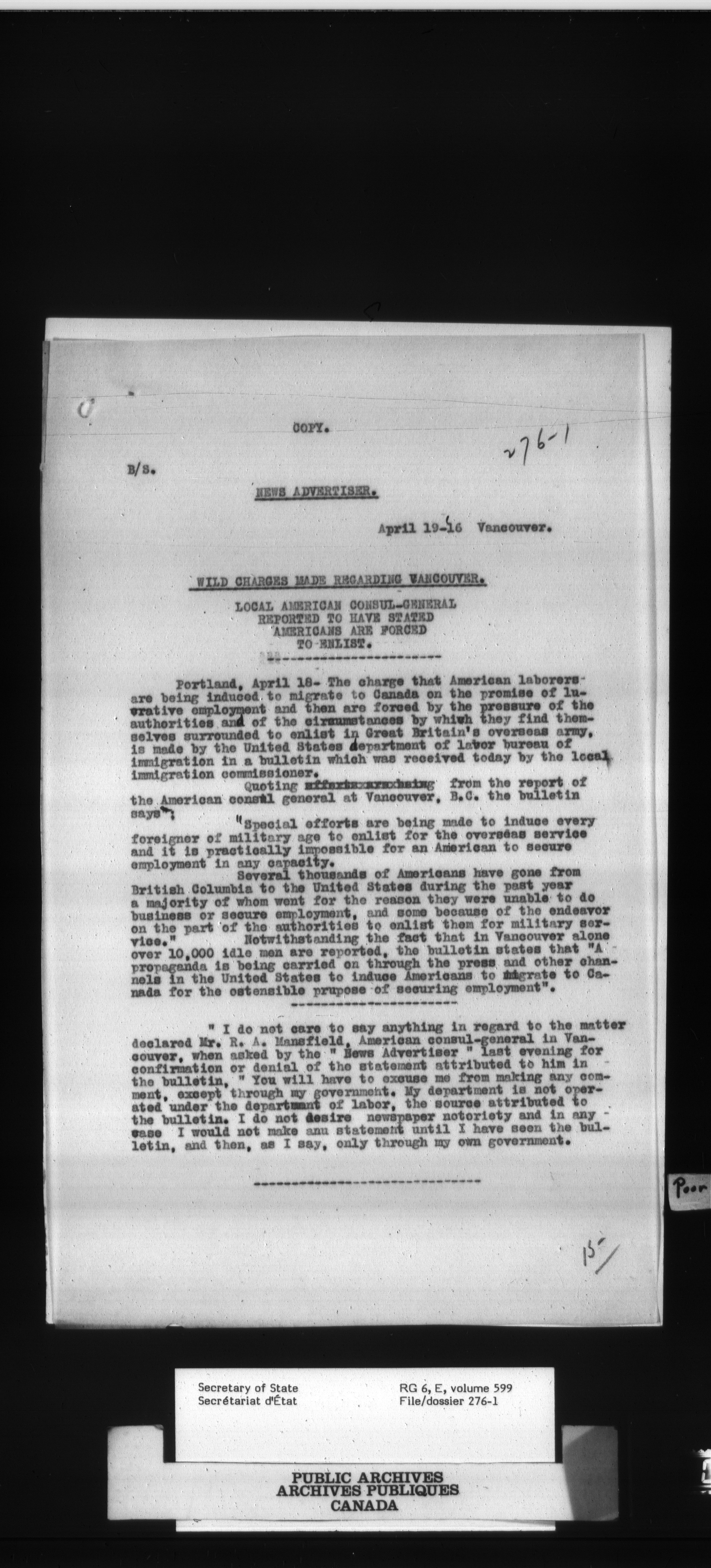 Secretary of State : Chief Press Censor, 1915-1920 - 87