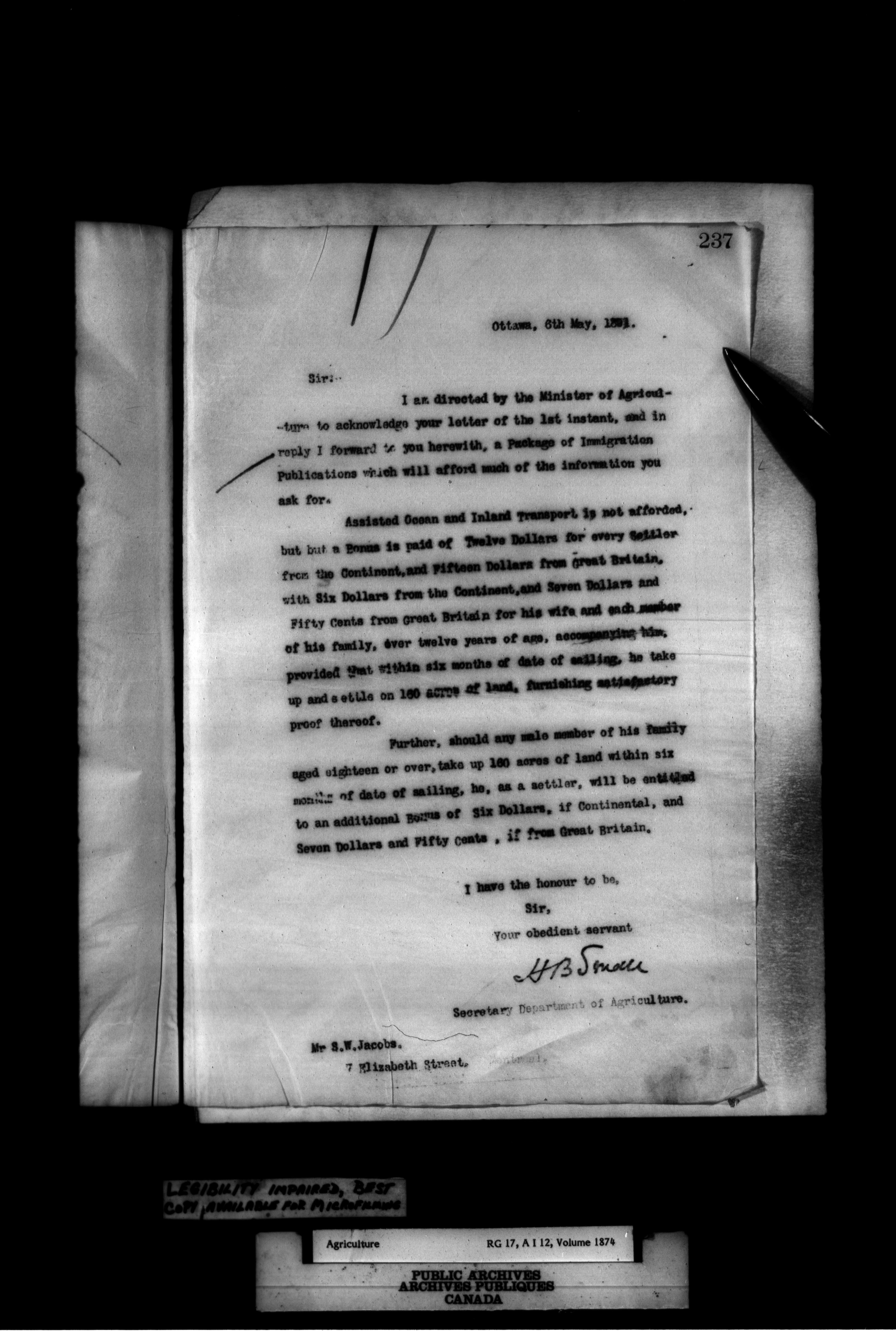 Department of Agriculture : Secretary and Assistant Deputy Minister's letterbooks, 1881-1916 - 871