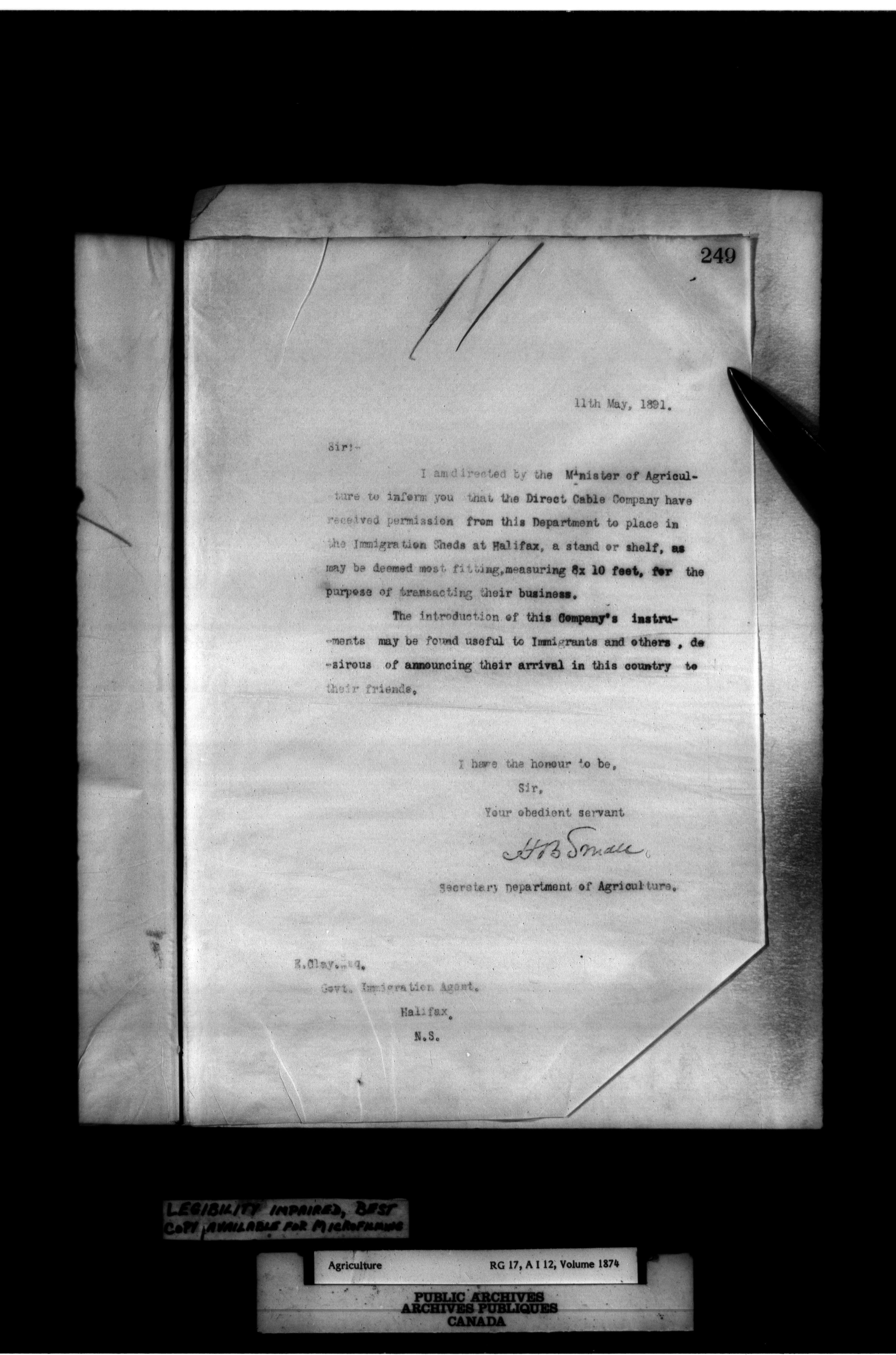 Department of Agriculture : Secretary and Assistant Deputy Minister's letterbooks, 1881-1916 - 871