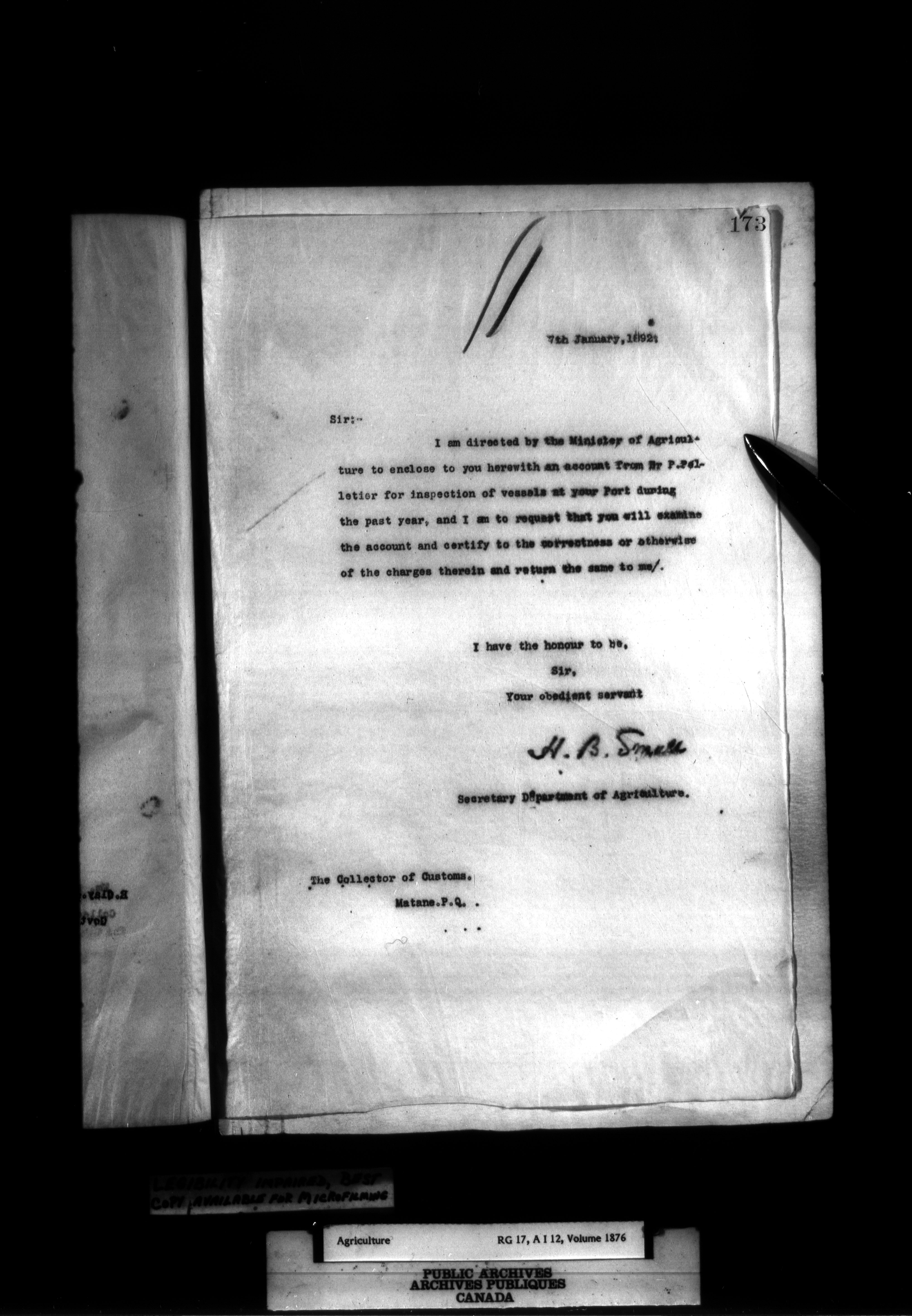Department of Agriculture : Secretary and Assistant Deputy Minister's letterbooks, 1881-1916 - 873