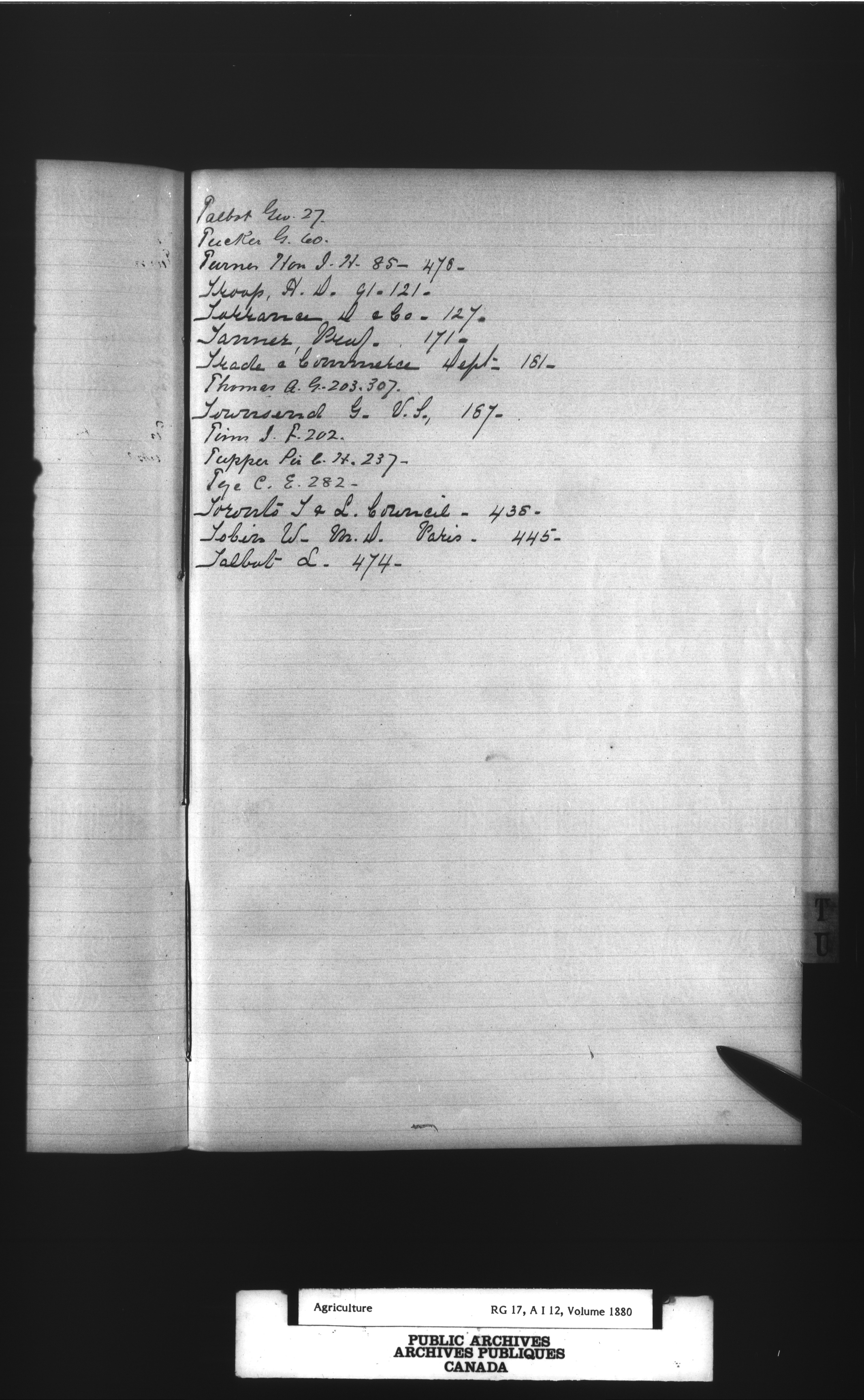 Department of Agriculture : Secretary and Assistant Deputy Minister's letterbooks, 1881-1916 : T-875