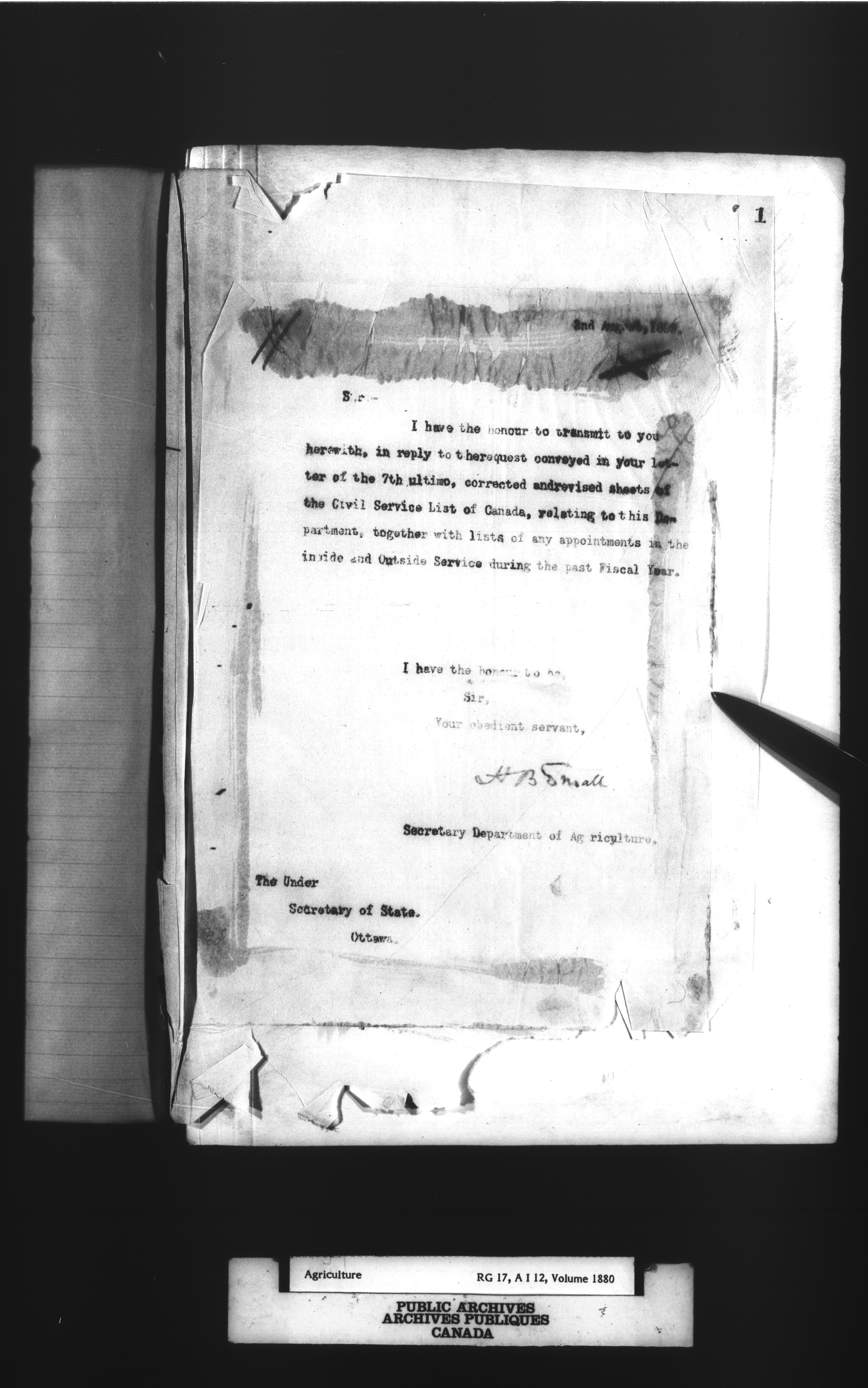 Department of Agriculture : Secretary and Assistant Deputy Minister's letterbooks, 1881-1916 - 875