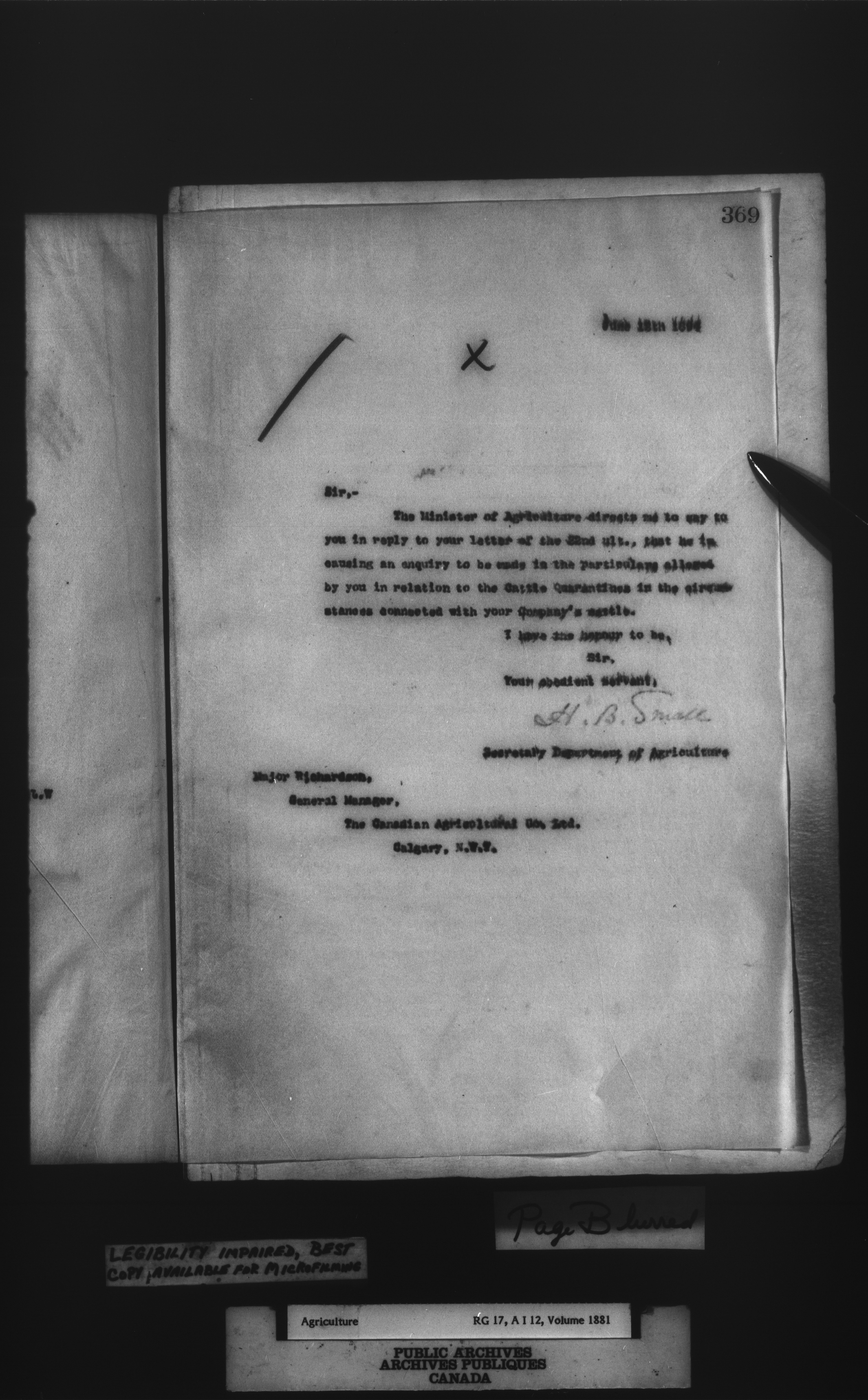 Department of Agriculture : Secretary and Assistant Deputy Minister's letterbooks, 1881-1916 - 876
