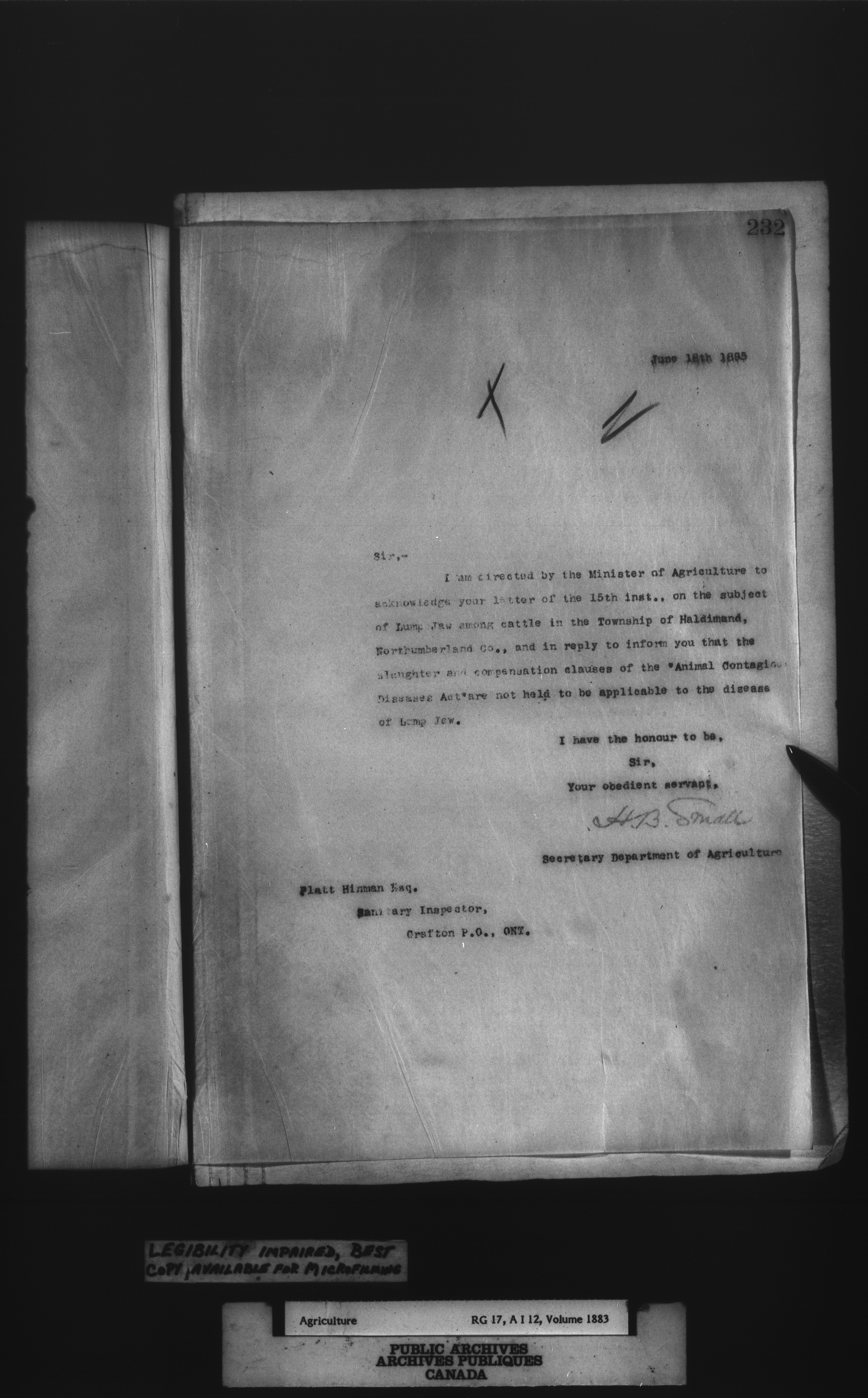 Department of Agriculture : Secretary and Assistant Deputy Minister's letterbooks, 1881-1916 - 876