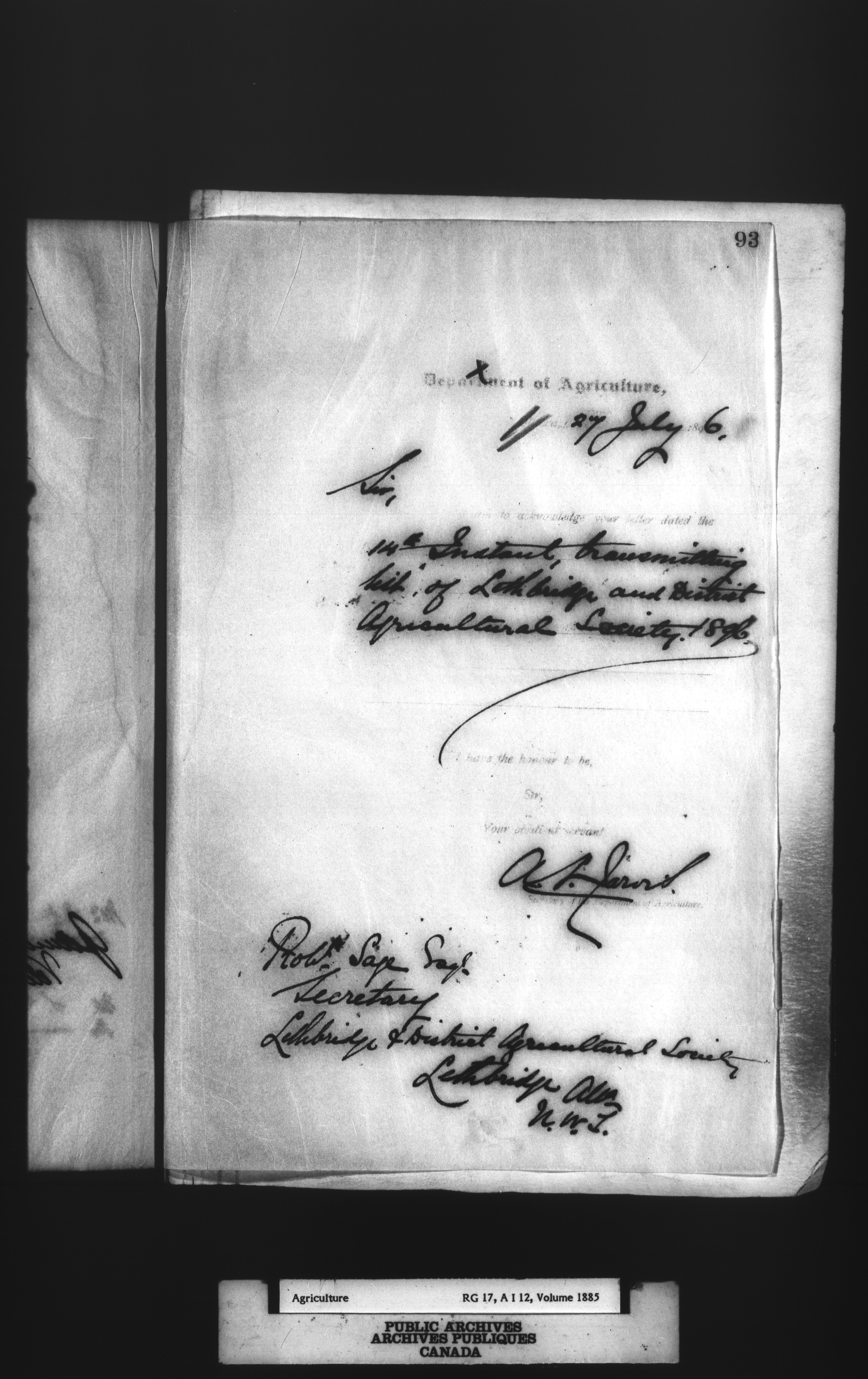 Department of Agriculture : Secretary and Assistant Deputy Minister's letterbooks, 1881-1916 - 877