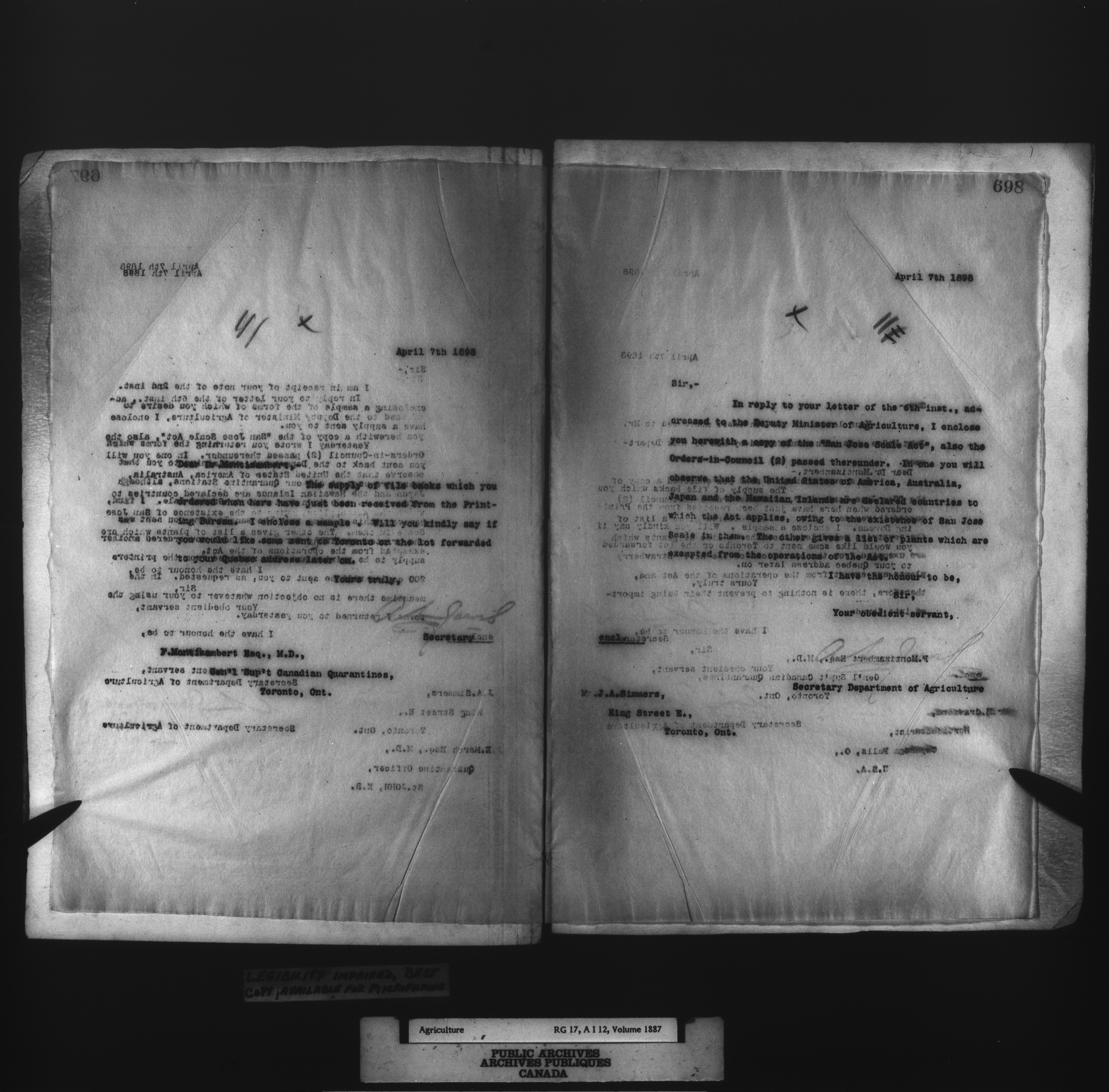 Department of Agriculture : Secretary and Assistant Deputy Minister's letterbooks, 1881-1916 - 879