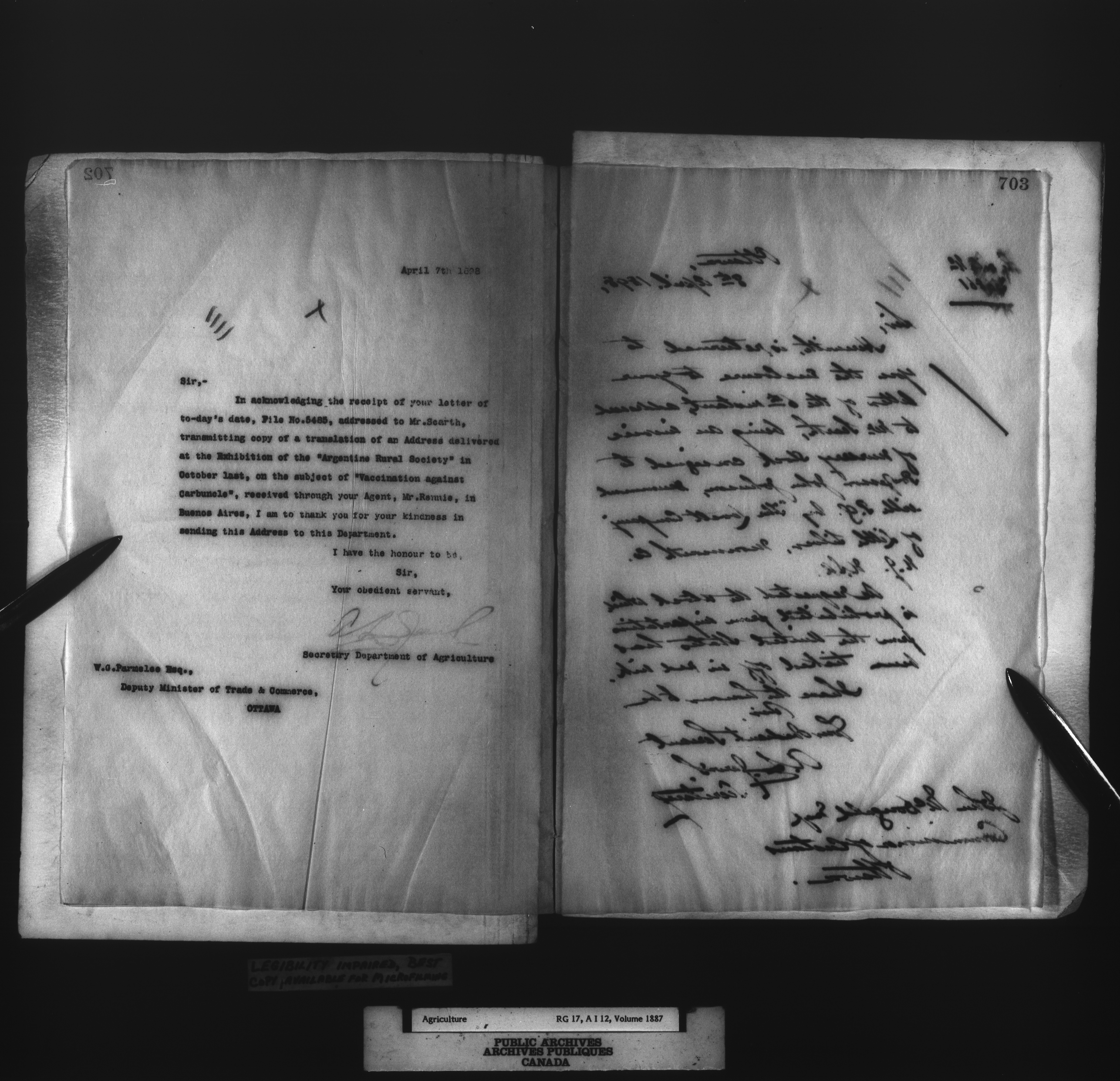 Department of Agriculture : Secretary and Assistant Deputy Minister's letterbooks, 1881-1916 - 879