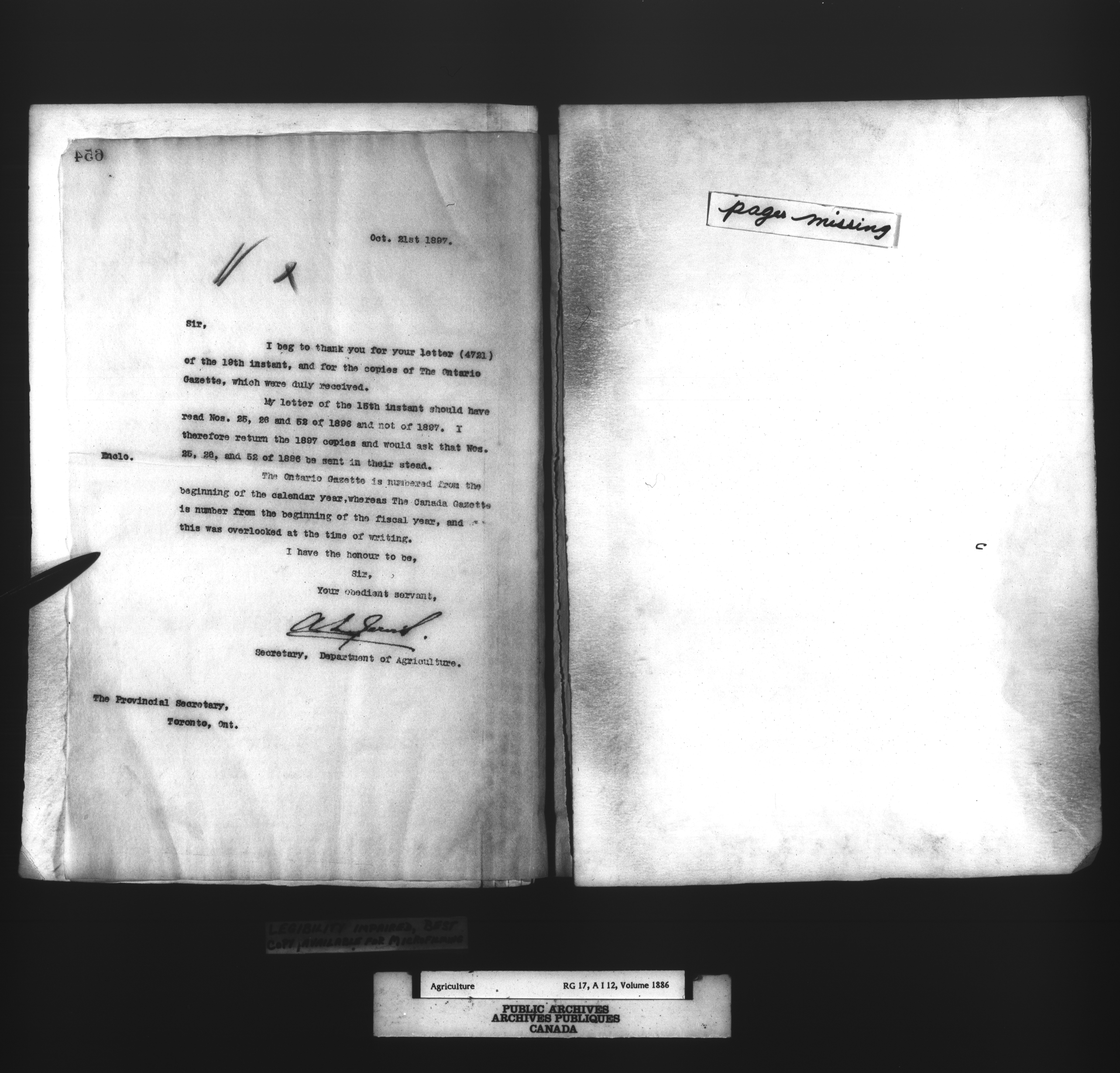 Department of Agriculture : Secretary and Assistant Deputy Minister's letterbooks, 1881-1916 : T-879