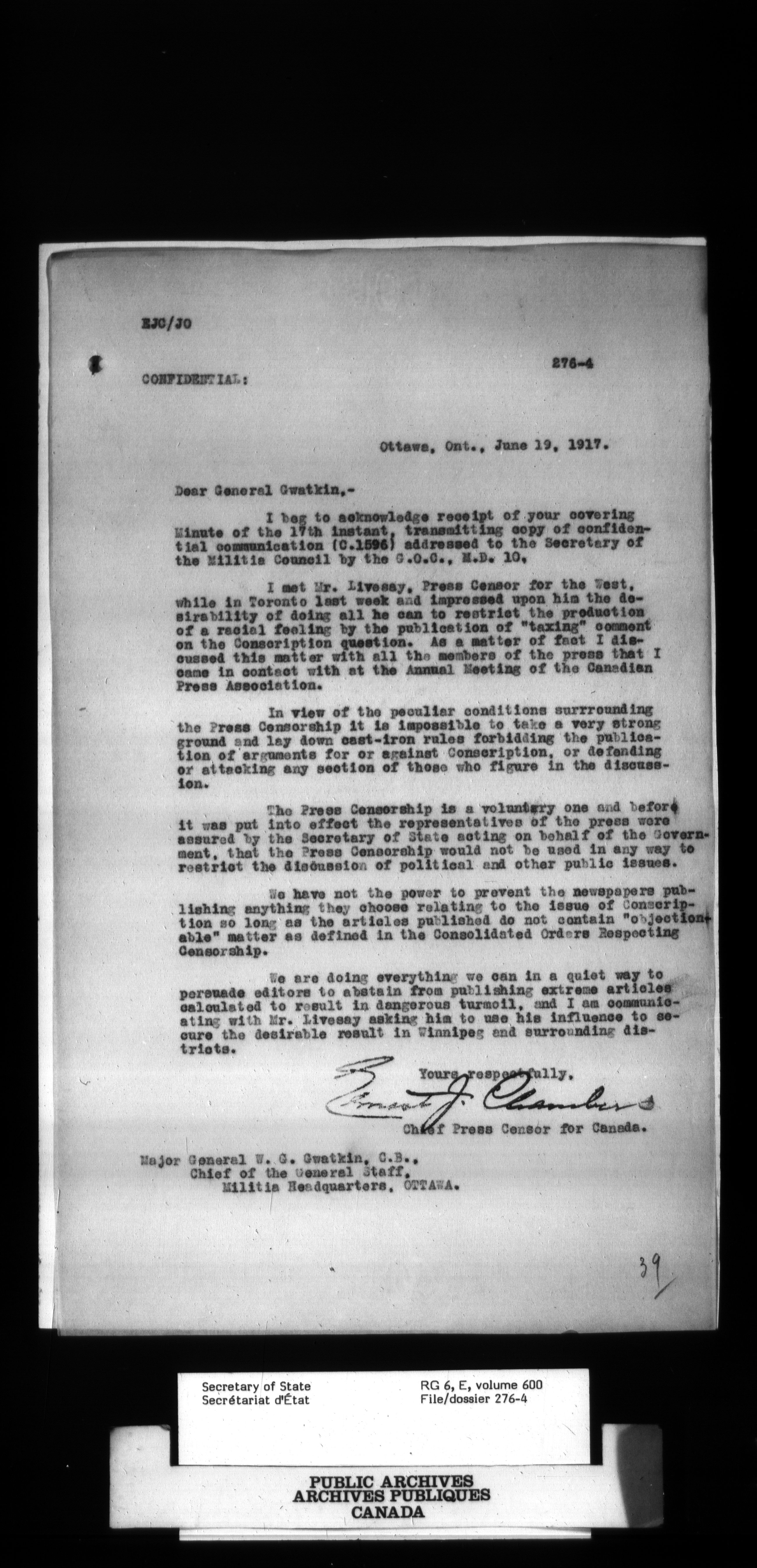 Secretary of State : Chief Press Censor, 1915-1920 - 88