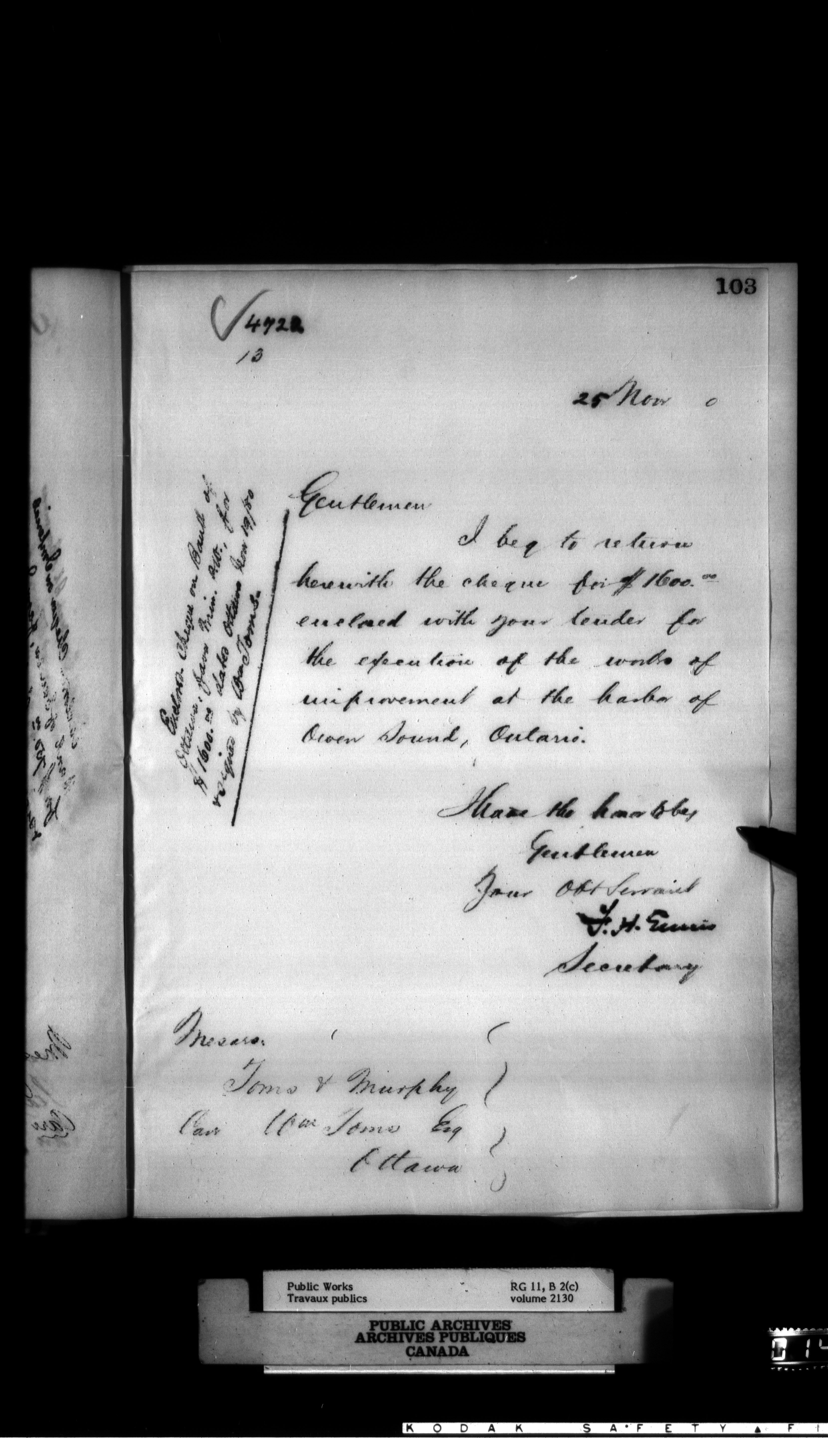 Department of Public Works : Outgoing Numbered Correspondence, 1879-1912 - 907