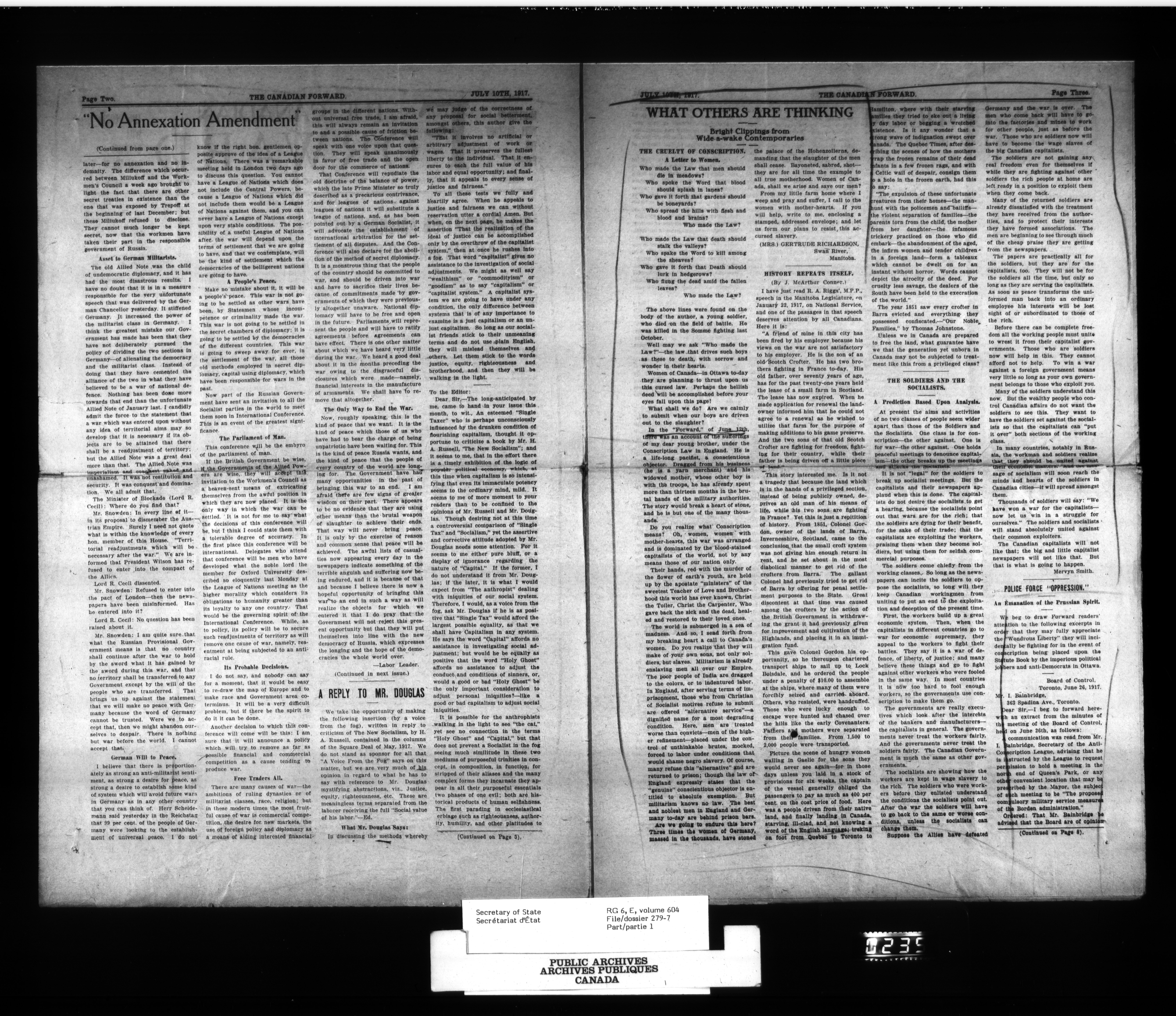 Secretary of State : Chief Press Censor, 1915-1920 - 91