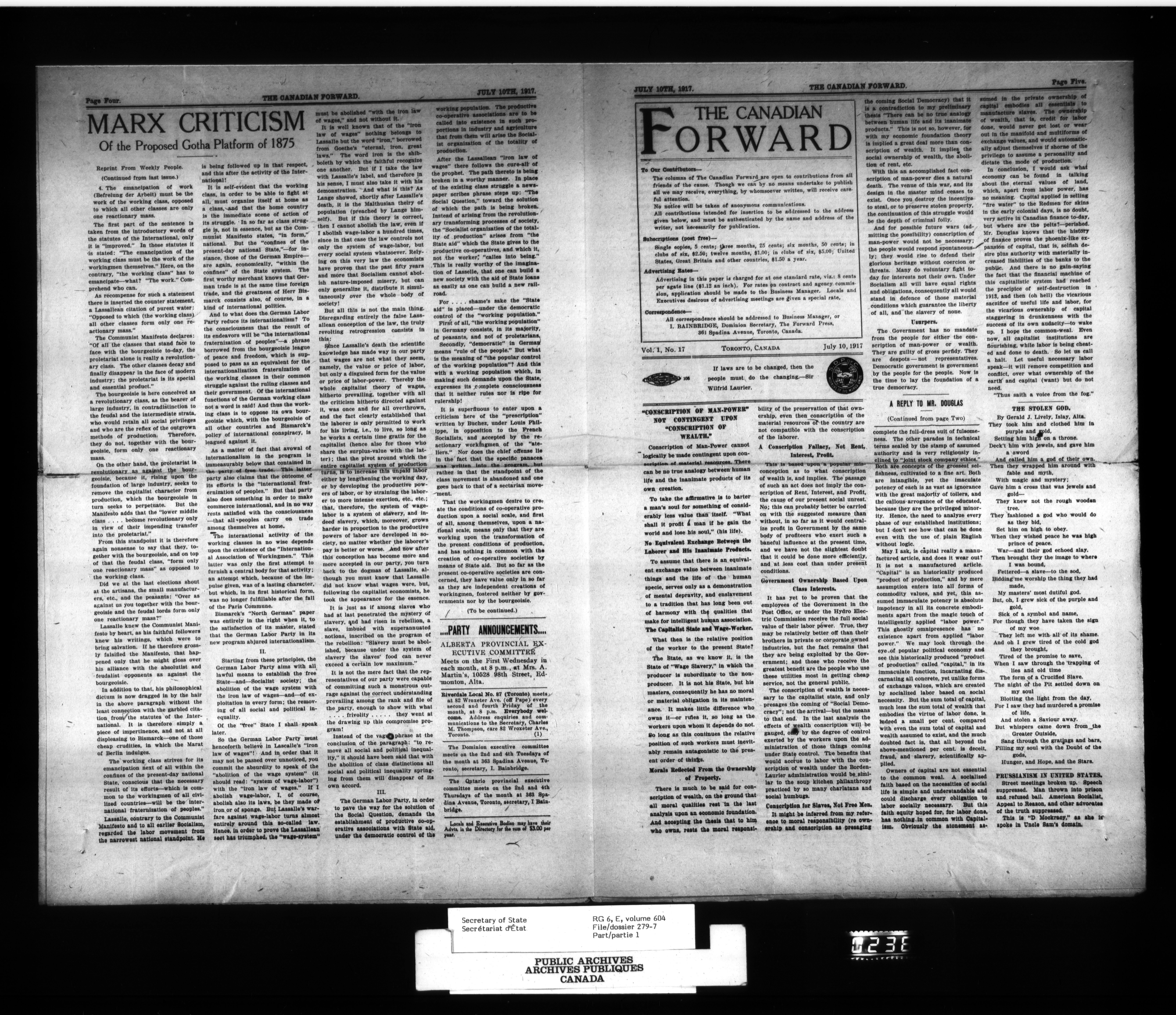 Secretary of State : Chief Press Censor, 1915-1920 - 91
