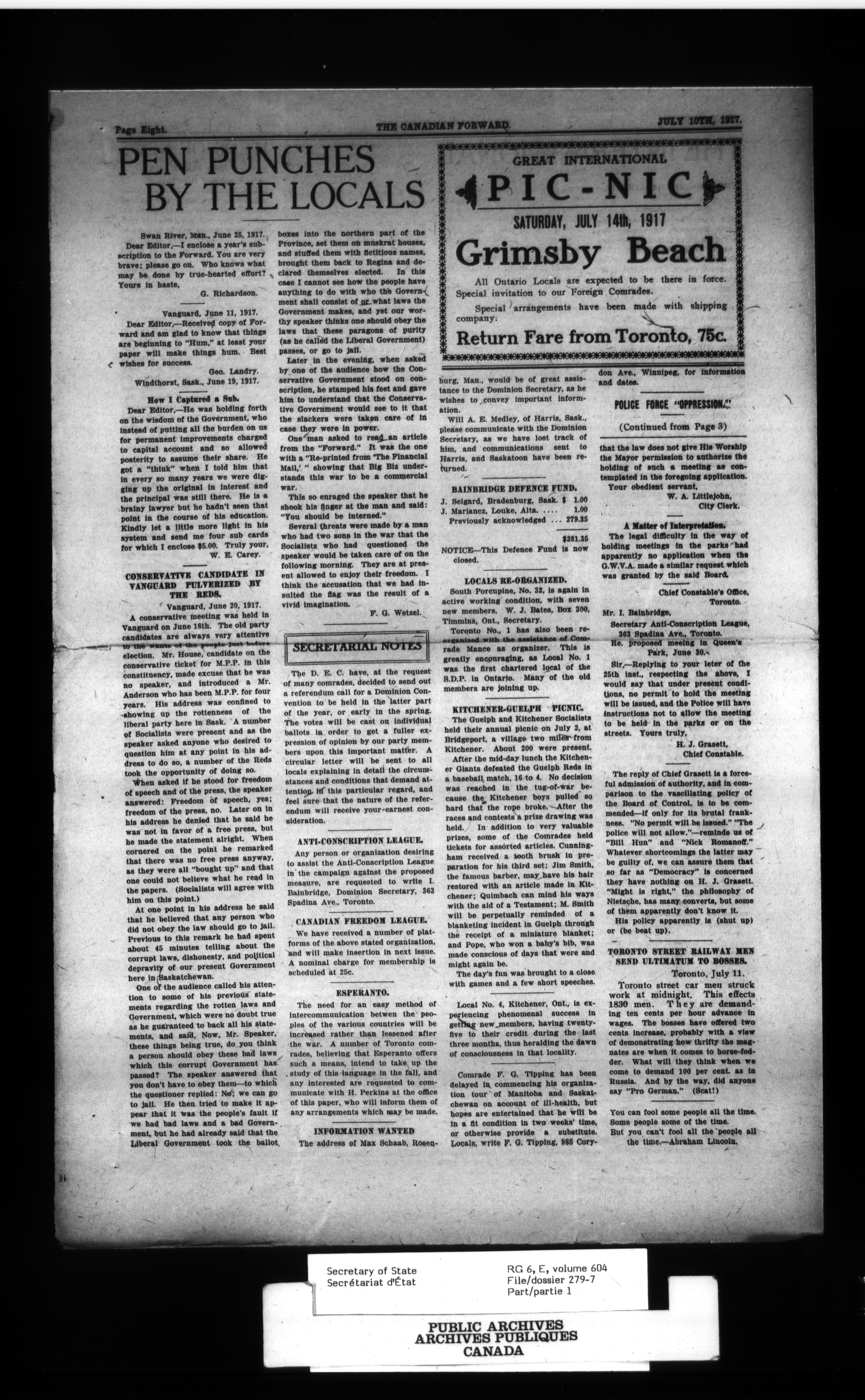 Secretary of State : Chief Press Censor, 1915-1920 - 91