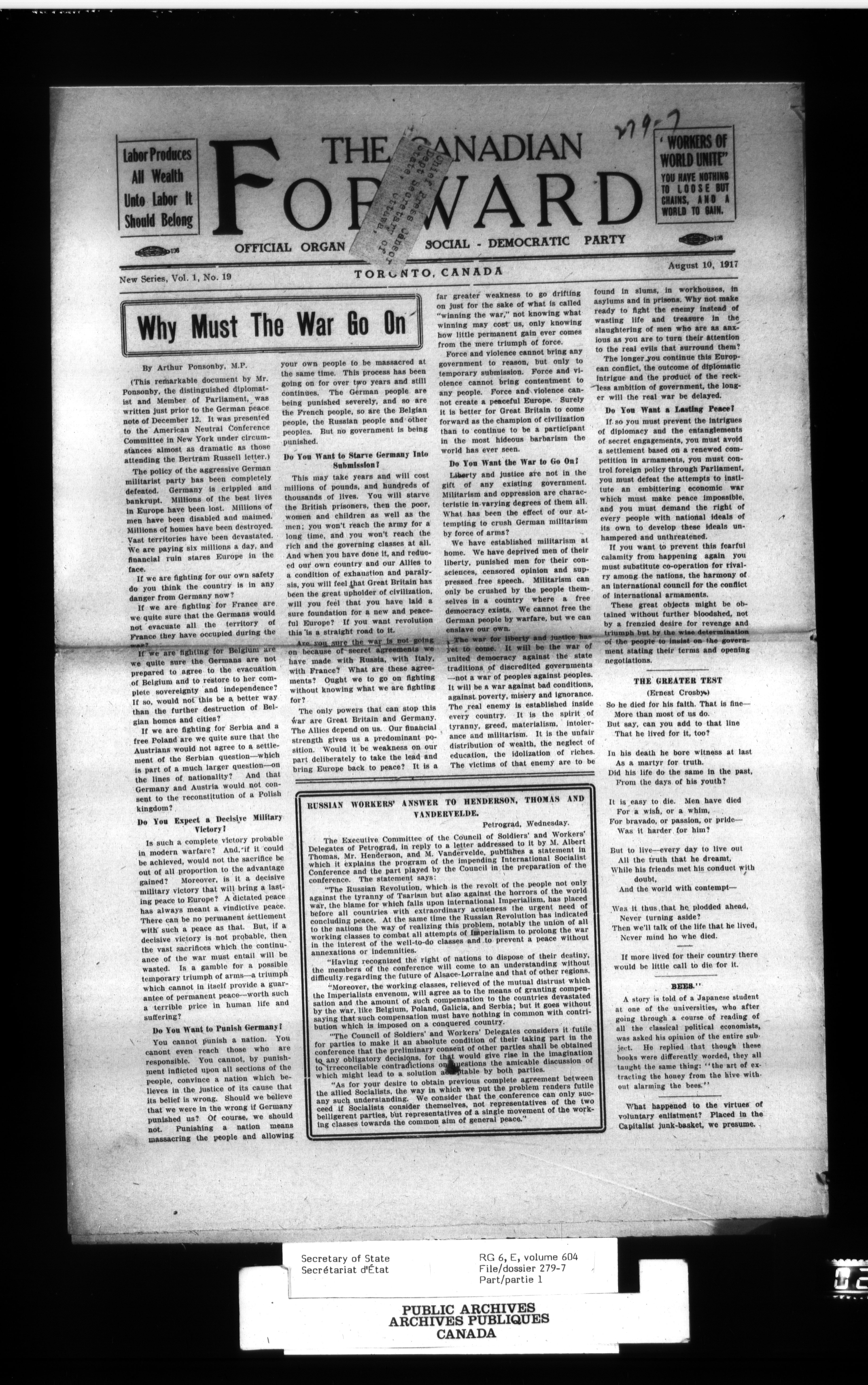 Secretary of State : Chief Press Censor, 1915-1920 - 91