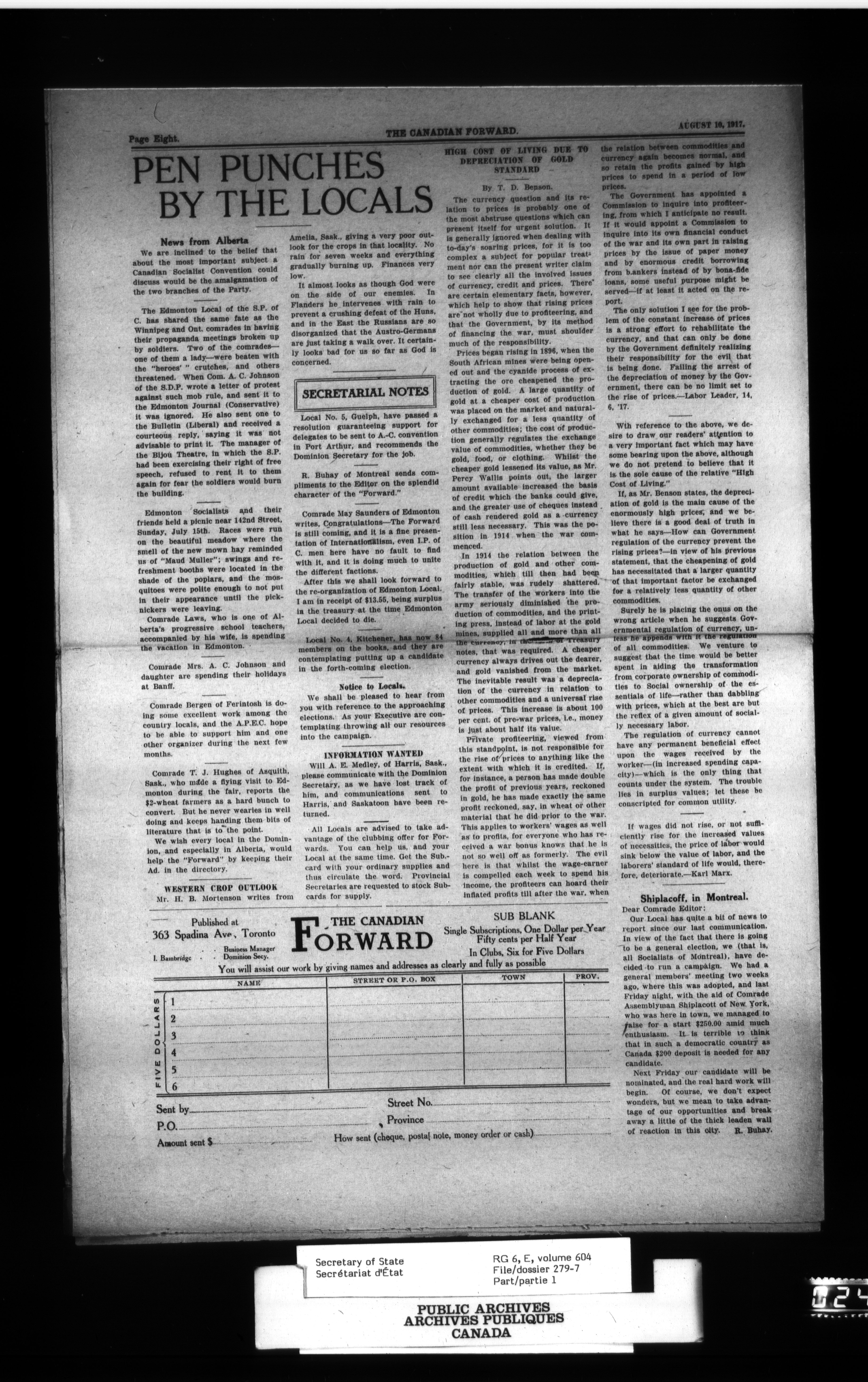 Secretary of State : Chief Press Censor, 1915-1920 - 91