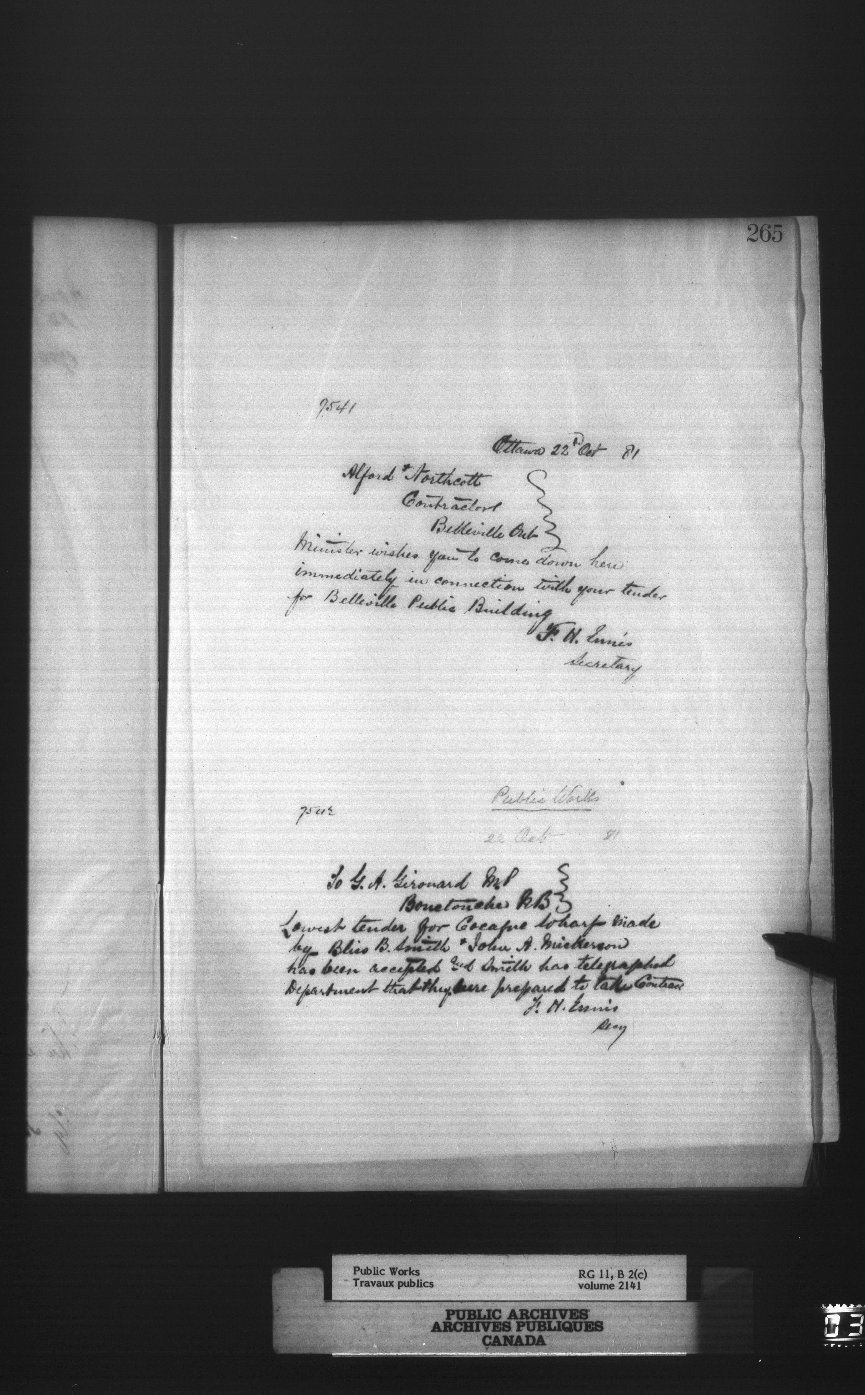 Department of Public Works : Outgoing Numbered Correspondence, 1879-1912 - 912