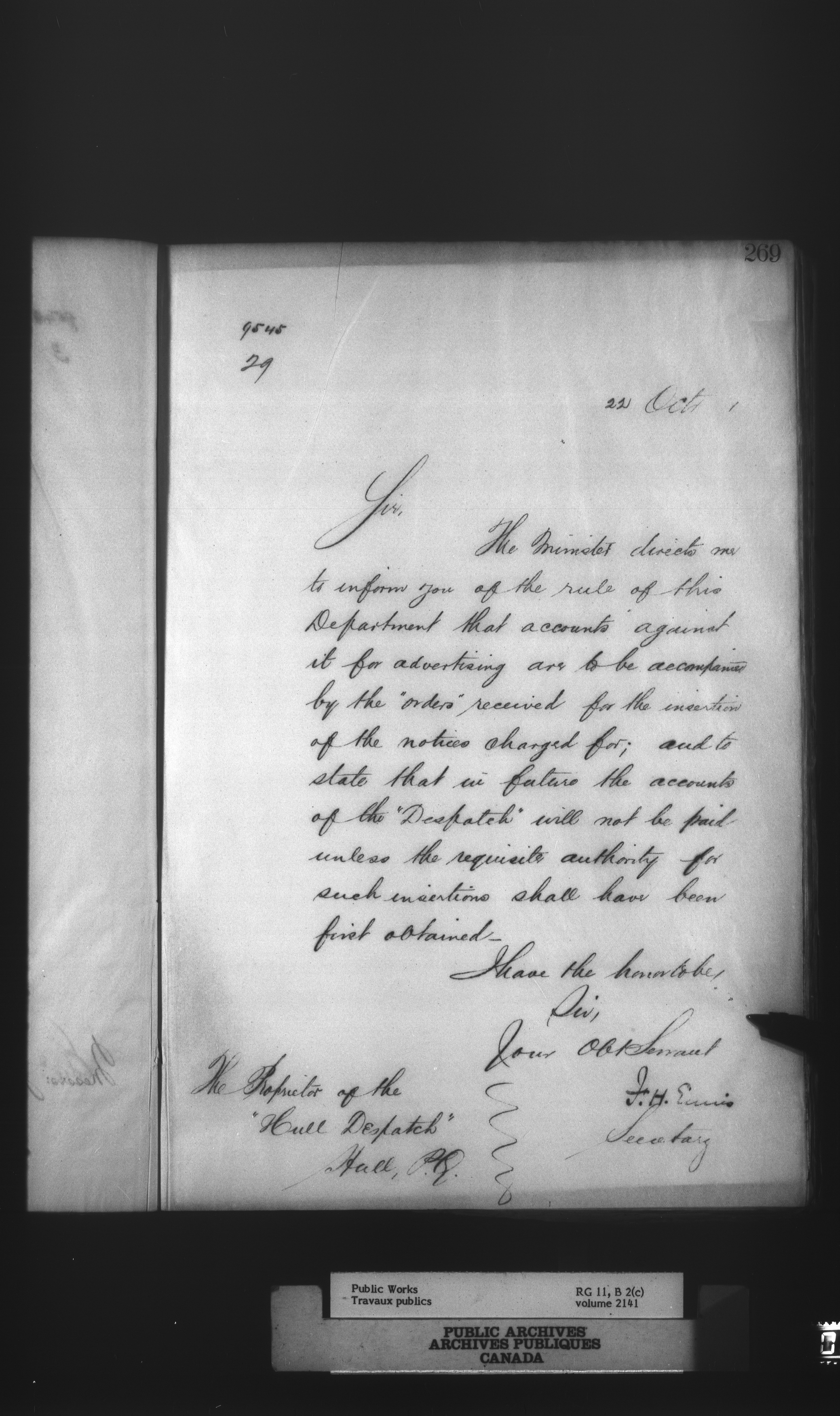 Department of Public Works : Outgoing Numbered Correspondence, 1879-1912 - 912