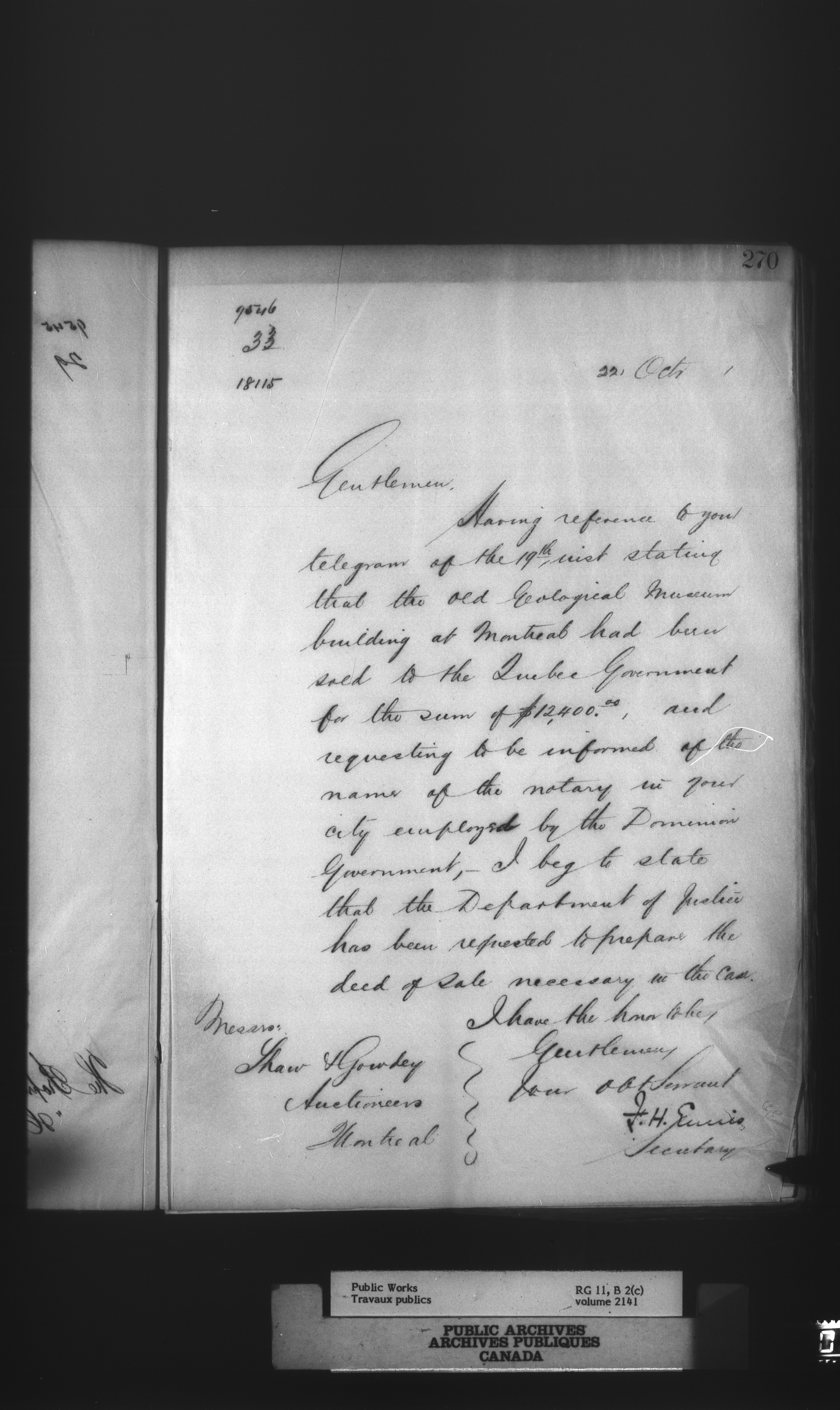 Department of Public Works : Outgoing Numbered Correspondence, 1879-1912 - 912