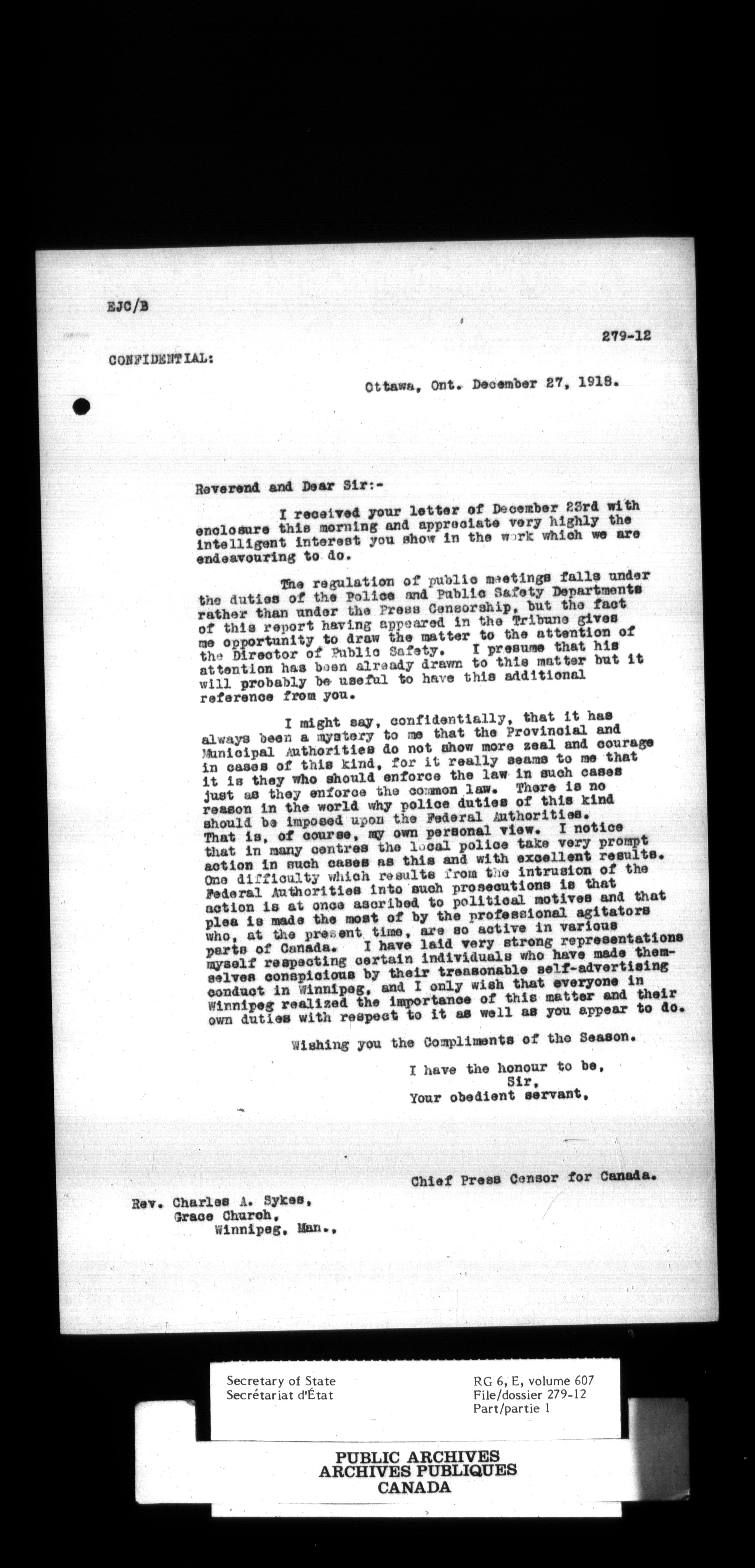 Secretary of State : Chief Press Censor, 1915-1920 - 92