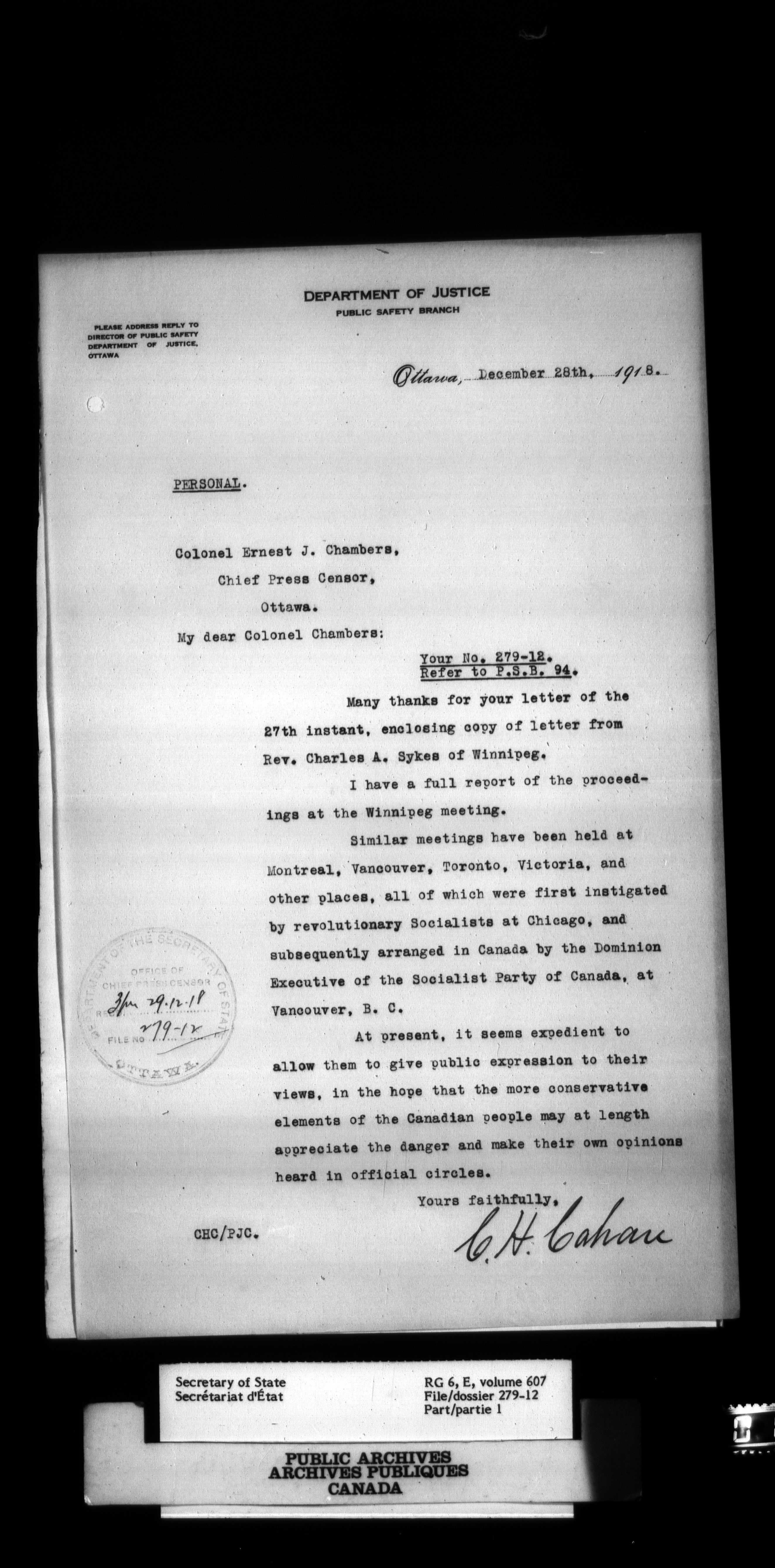 Secretary of State : Chief Press Censor, 1915-1920 - 92
