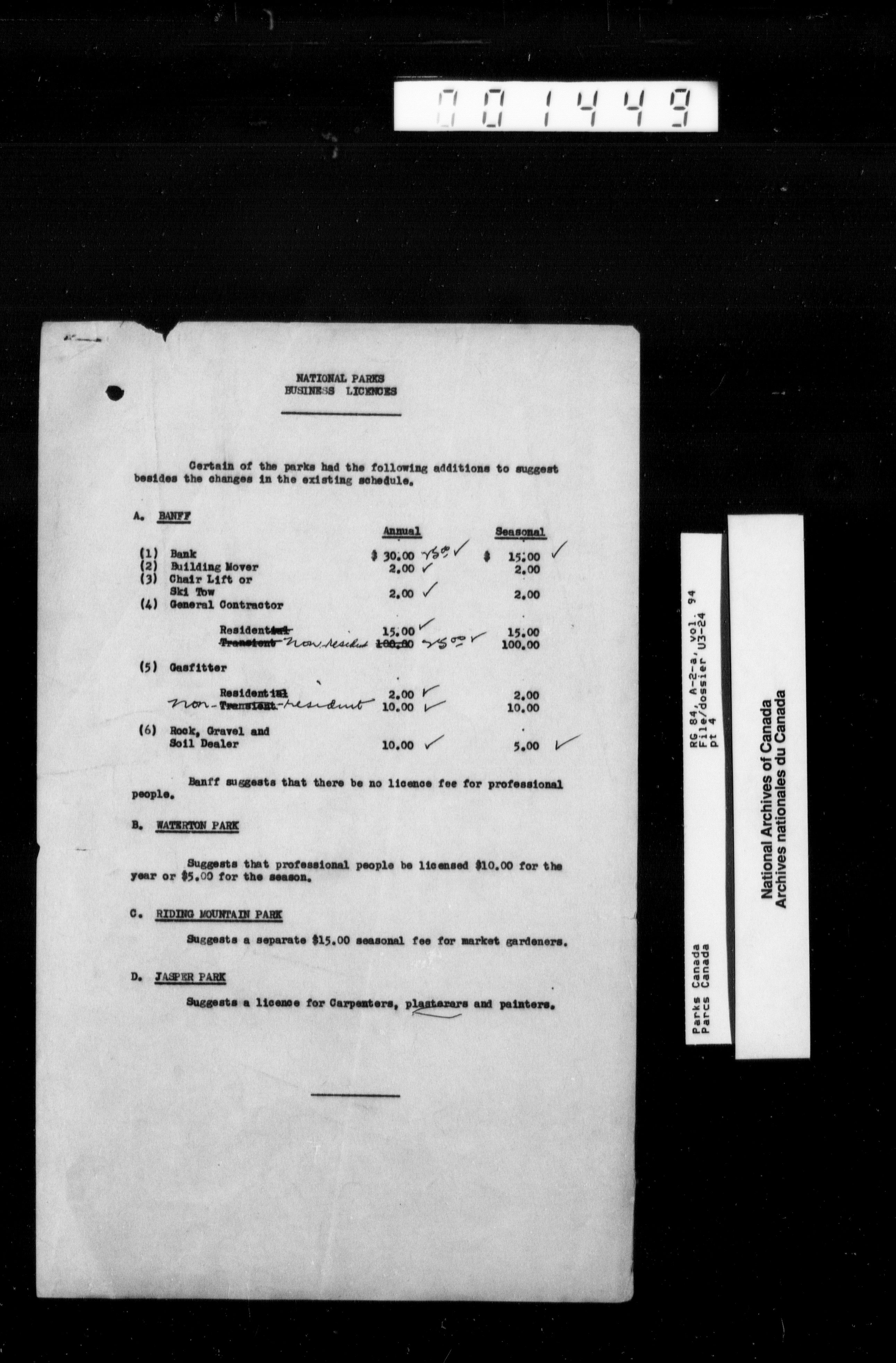 Department of Canadian Heritage, Canadian Parks Service : Park/subject classification system - 9386